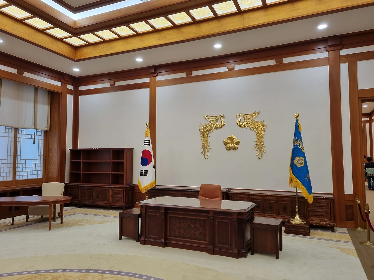 대통령 집무실에 배치된 책상이 관람객들의 시선을 잡는다. 규모는 그리 크지 않지만 품격이 있고, 최고 권력자의 위엄이 느껴진다.