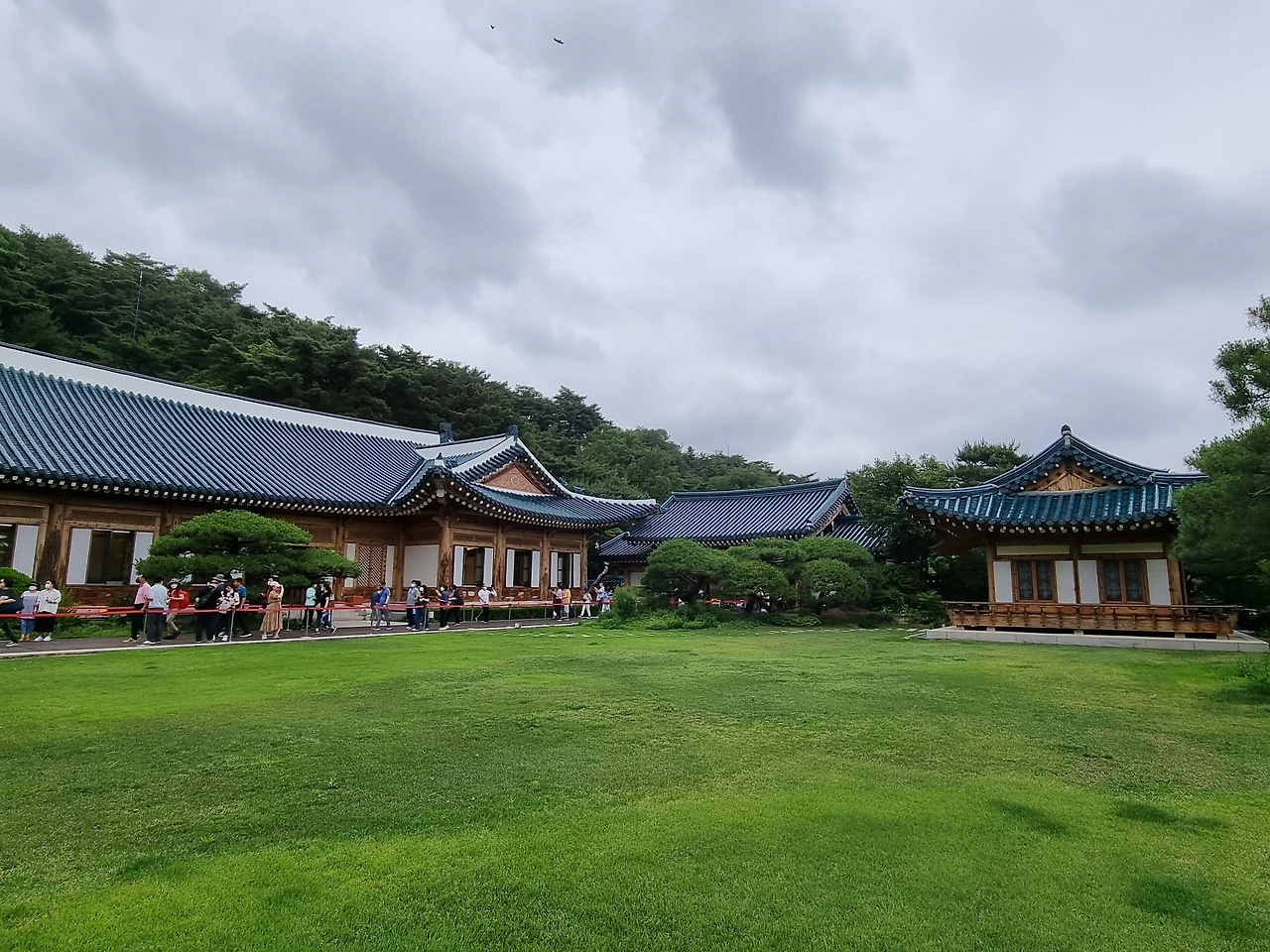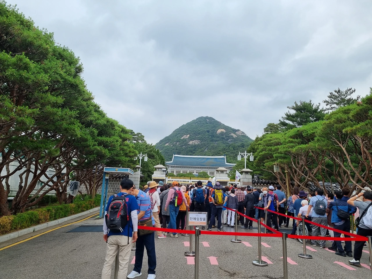 청와대 정문기대 반 설렘 반으로 대문 앞에 서니, TV에서 보던 청색 기와지붕 건물이 철문 너머로 선명하게 보인다. 잠시 후 대문이 열리고, 안내원들이 예약자 바코드 확인 후 안으로 들여다 보낸다.