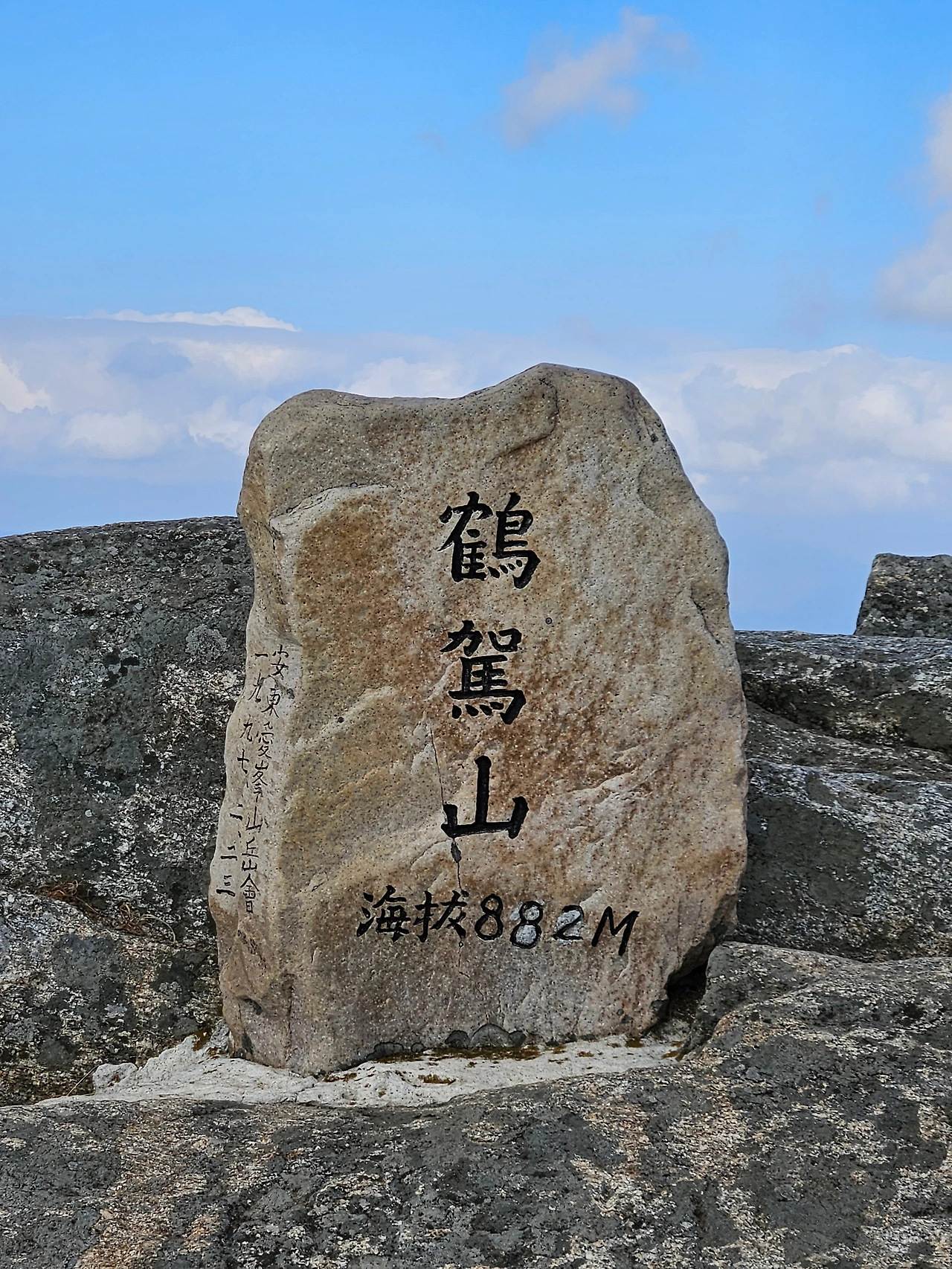 상상했던 것과 달리 평평하고 널찍한 바위가 아니다. 겹겹이 쌓인 시루떡바위가 양쪽으로 갈라지고, 가운데가 움푹 들어간 요새 같은 지형이다. 그 위에 학가산이라 적힌 정상석이 박혀 있다.