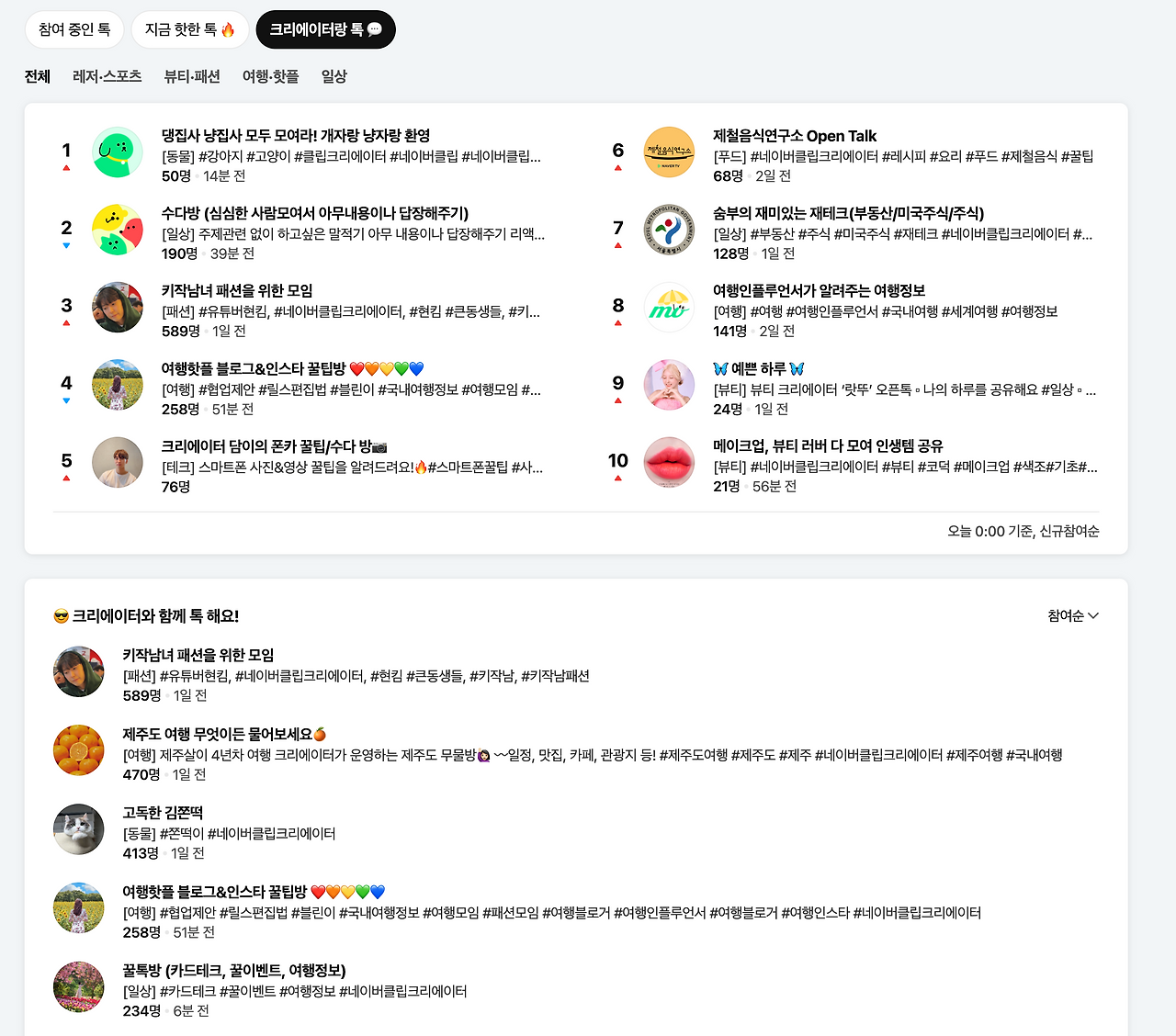 최근에 네이버 톡톡을 이용하다가 새로운 기능을 발견했다. 크리에이터랑 톡인데, 네이버 내부 크리에이터(블로그, 숏폼 등)과 유저들간의 단톡방 개념이다. 개별적으로 들어가봤는데 아직 활성화된 느낌은 아니고 이상한...메세지도 많았다.