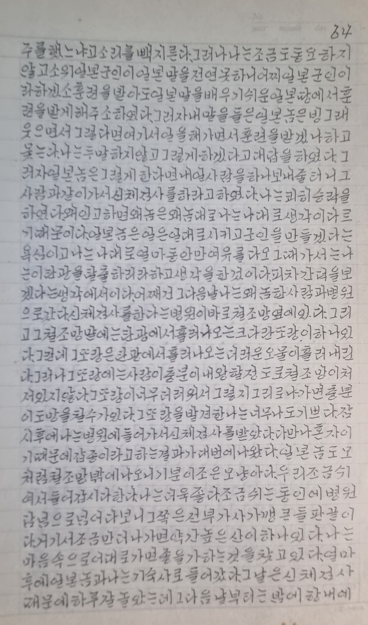 아울러 아버지의 서체를 잊지 않기 위해서 자서전 중 한 페이지의 사진도 남겨 둔다.