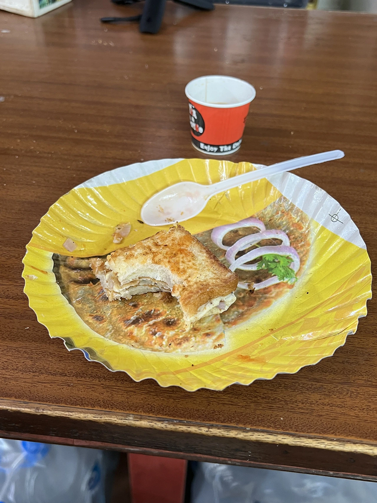 아침은 나빈 가게 앞 노점에서 먹었다. 아침을 판매하는 가게였다. 계란에 토스트를 싸서 주는 오믈렛에 짜이를 곁들였다. 다 녹슬다 못해 검은색이 되어버린 펜에 조리해 주는 요리였다. 모든 메뉴를 그 한 펜으로 만드는 사장님. 요리가 바뀔 때마다 드럼통에 떠놓은 정체 모를 물로 대충 설거지를 하신다. 이제는 이 정도 위생은 익숙해졌다. 요리는 역시 맛있었고 손을 이용해 맛있게 먹었다.