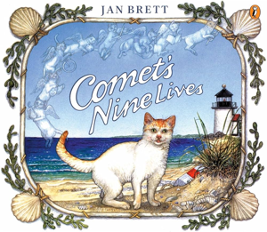 잰 브렛의 그림책 <Comet’s nine lives, 코멧의 9개 인생>은 8번 죽었다 살아나 9번째 인생을 살게 되는 떠돌이 고양이 코멧의 이야기다.
