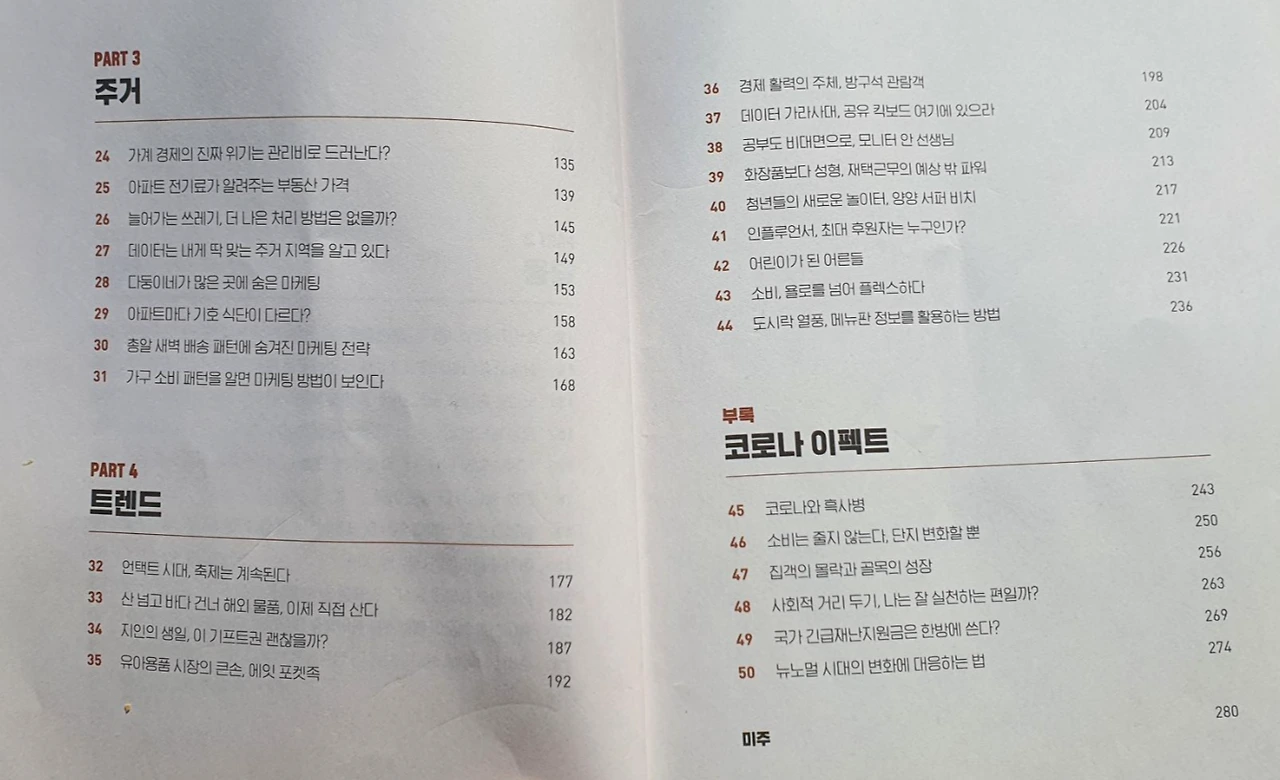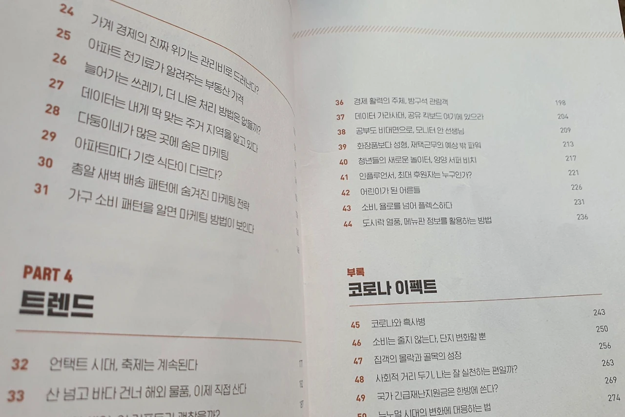 소비의 뉴 노멀이 열린 포스트 코로나 시대에 살아남는 방법이 변화를 찾는 것이라면 지금 가장 유용한 방편은 데이터다. 데이터에 접근할 때 '분석'보다 '활용'에 초점을 맞추어야만 한다. 빅데이터와 평균값은 느리게 변화하며 그 원인을 찾아내기가 어렵기 때문에 먼저 스몰 데이트에 접근하는 것이 좋다. 작게는 본인이 세운 가설을 검증하고, 한 단계 더 깊게 들어가 개인과 기업이 보유한 데이터를 원자료(raw data) 수준에서 살펴봐야 한다. 비즈니스 관점에서 가설을 세우고 데이터를 검증하는 과정을 반복한다면 변화를 발견한 순간이 찾아올 것이다.