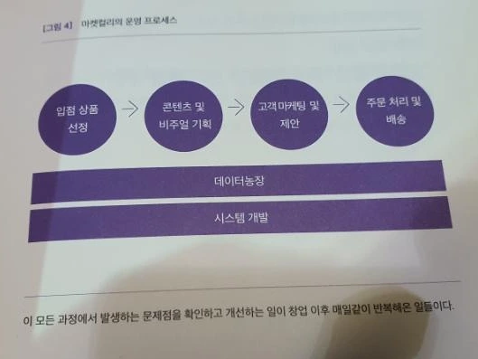 ' 마켓 컬리의 공급사 관리란 단지 효율적인 공급망을 관리하기 위한 것이 아니라 '좋은 상품을 들여놓기 위한 여정'이었다고 할 수 있다. 이 여정은 첫째, 전국 산지나 유명 공급사를 돌며 좋은 공급사 찾아내기, 둘째, 유명 공급사 입점시키기, 셋째, 공급사와 함께 상품 개선하기, 넷째, PB 상품 만들기다.' (P.97)