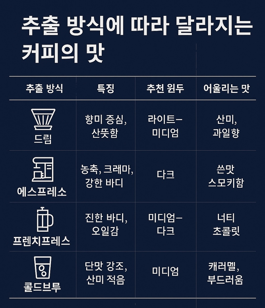 추출 방식은 맛을 바꾸는 또 하나의 예술입니다.