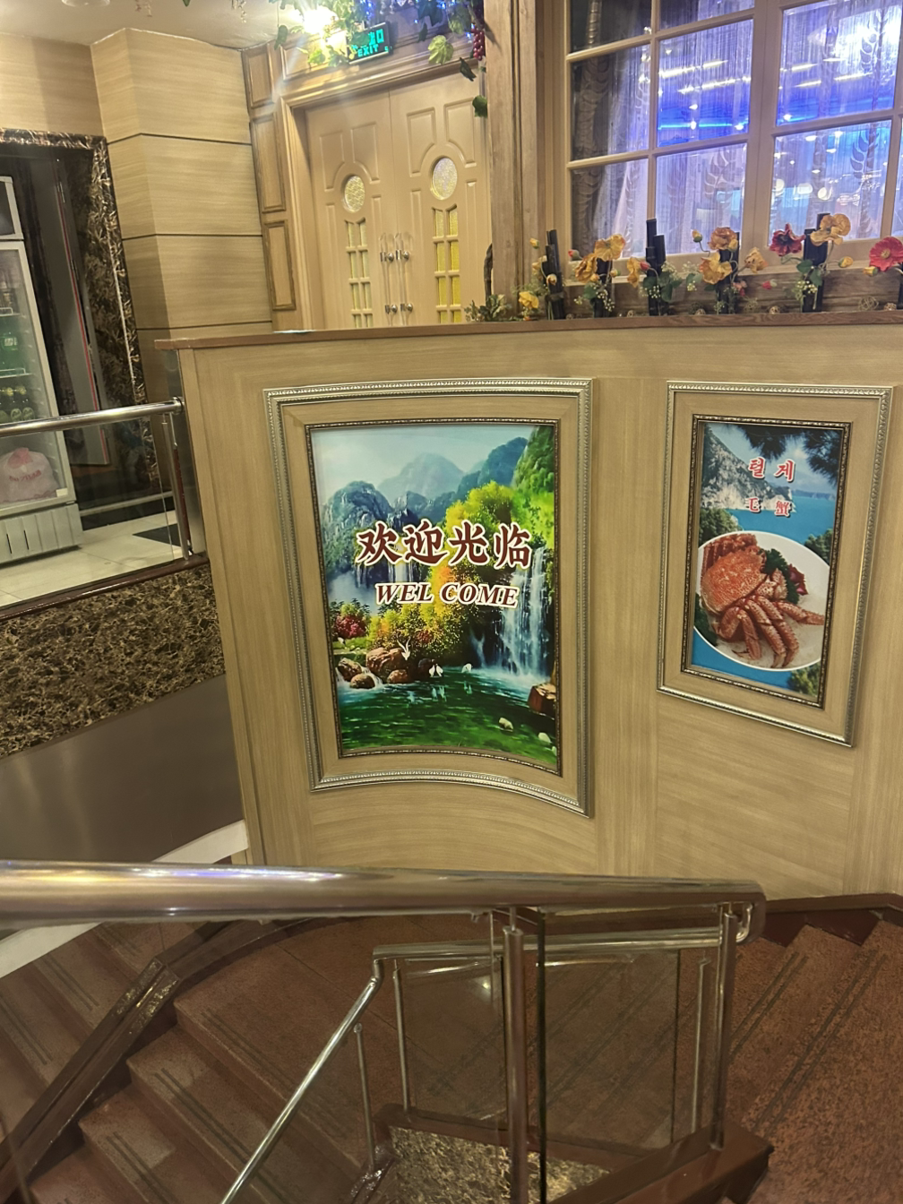 중국에 있는 북한식당은 한국사람을 받는 곳도 있고 거절하는 곳도 있다던데 이곳은 들어갈 수 있었다.