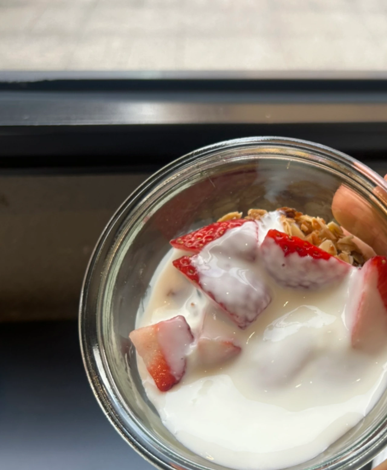 아침세트로 요거트, 견과류, 과일을 먹었는데 맛있었다.