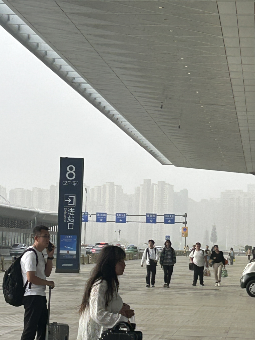이 사진이 그 이유를 말해준다. 아침공기와 아침하늘이 이렇게나 뿌옇다. 안개 아니고 진실된 미세먼지다. 비가 왔어서 비를 맞았는데 내 검정 가방이 완전히 흙으로 뒤집혀졌다. 이런 비는 처음본다. 정말 충격적인 장면이었다. 마스크를 안 하고는 버틸 수 없는 수준이었지만 중국인들은 딱히 신경 쓰지 않는 듯했다.
