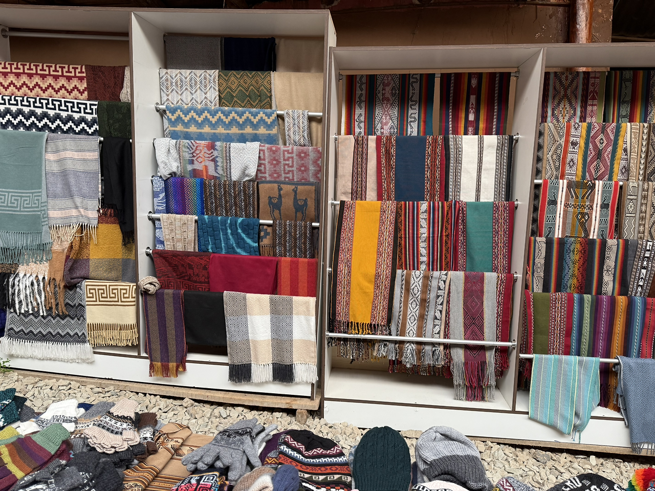 투어의 첫 시작에는 이름 모를 수공예품 가게를 간다. 가게에 사람들이 다 들어오면 페루 전통 의상을 입은 사람들이 가이드처럼 설명을 시작한다. 알파카의 털로 만든 실을 보여주고, 그 실로 짠 전통 수공예품들을 보여준다.