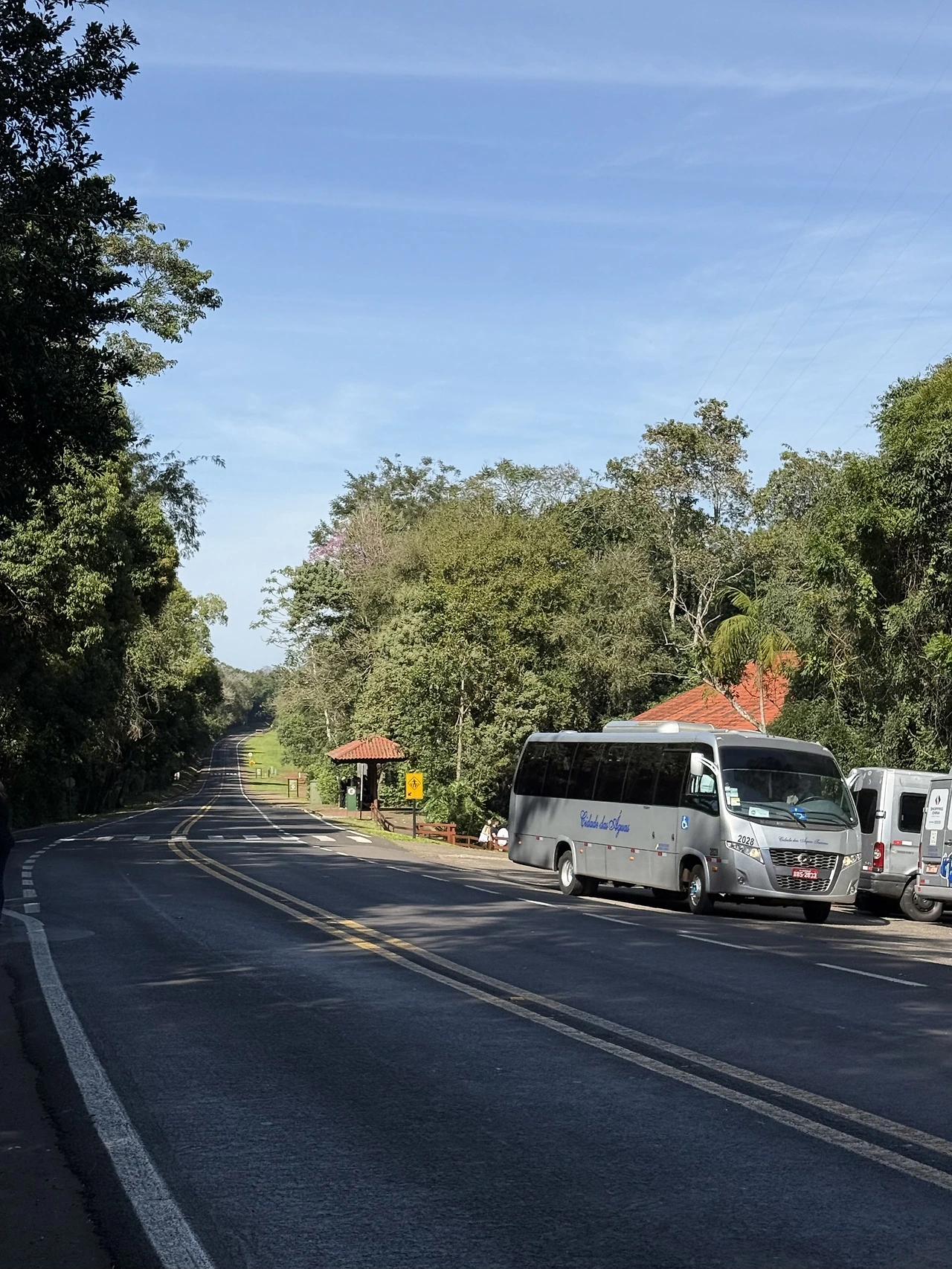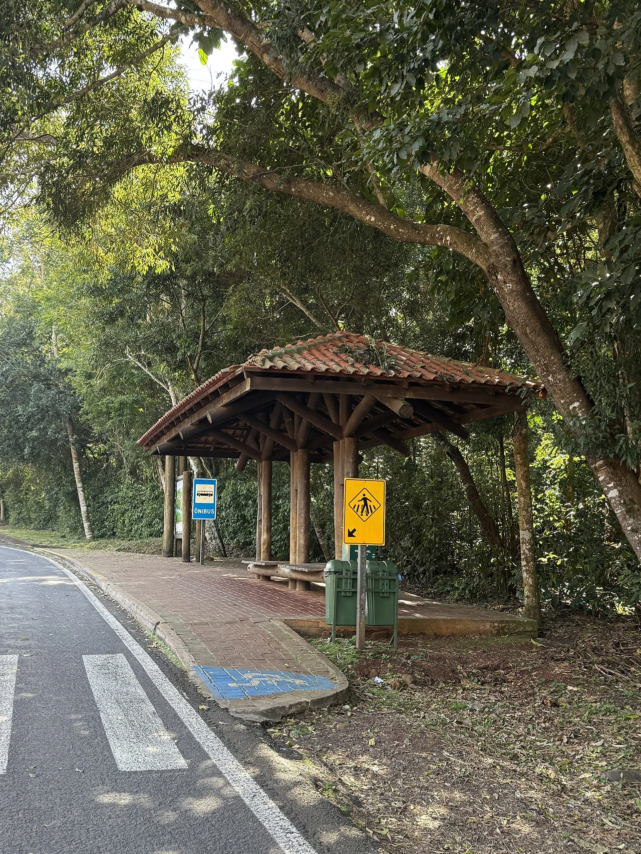 직원의 안내에 따라 버스를 타고 한 정거장 뒤의 다음 정류장에서 내렸다. 버스 정류장 바로 옆에는 트레킹 코스의 입구처럼 보이는 길이 있었고, 직원으로 보이는 할아버지 한 분이 계셨다. 할아버지는 나에게 어디를 가고 싶냐고 물어보셨다. 할아버지는 영어를 못 하셨다. 숲이라 그런지 데이터가 잘 안 터져서 번역 어플도 사용할 수 없었다. 혹시 하는 마음에 스페인어 몇 단어를 날렸는데 이해하셨다. 스페인어와 포르투갈어가 비슷한 표현이 많다고 하는데 인사말만 비슷하지 단어는 다른 게 너무 많았다. 할아버지가 스페인어를 조금 아시는 분인 거 같았다. 하지만 내가 스페인어로 말하면 이해는 하시지만 내가 이해할 만한 단어로는 말하지 못하셨다. 할아버지는 포르투갈어로 말하고 나는 스페인어로 말하는 이상한 장면이 펼쳐졌다. 지금 생각해도 이게 뭔가 싶은데 소통이란 건 어떻게든 서로 이해해보고자 하는 마음에서 비롯되는 게 아닌가 싶다. 내가 이과수 폭포를 보고 싶다는 말에 할아버지는 여기가 아니라 반대쪽으로 가야 한다고 하셨다.