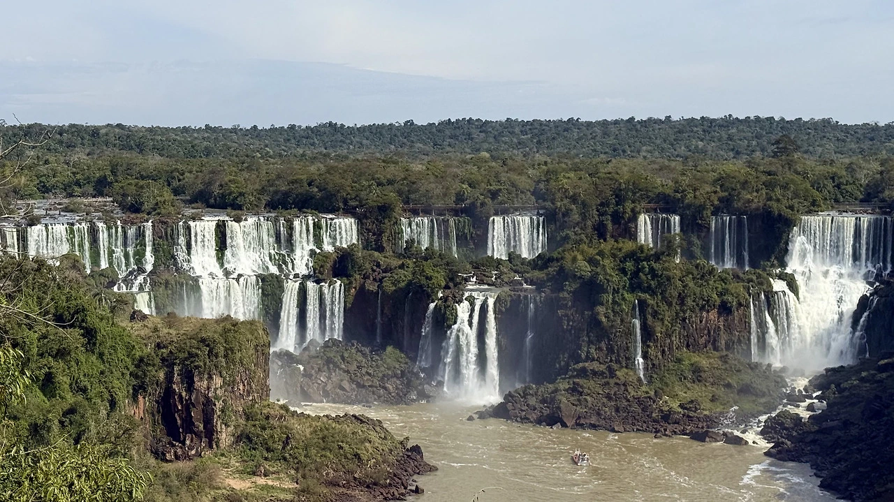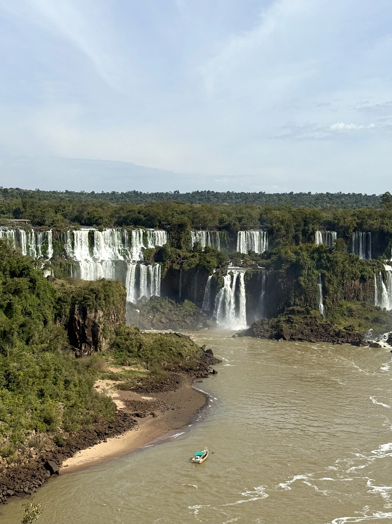 전망대에 도착하니 자를 대고 만든 거 같은 물줄기들이 보였다. 누가 자를 대고 정확하게 잘라 놓은 거 같은 모습이었다. 그래서 세계적인 폭포인 건가. 폭포 가까이 다가가는 보트 투어의 배도 보였다.