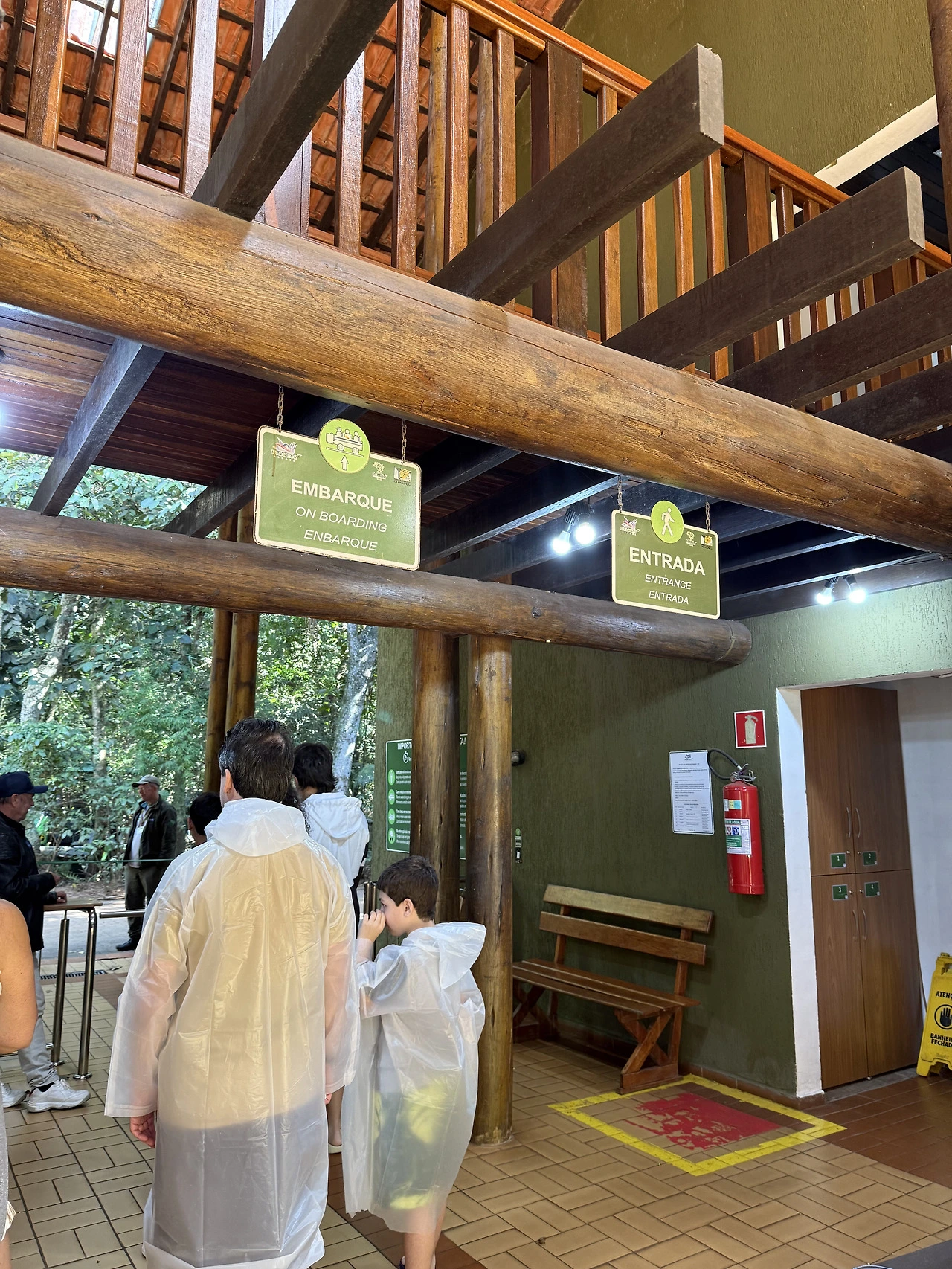 버스가 출발한 후 두 번째로 도착한 정류장에서 사람들이 우르르 내렸다. 나도 사람들을 따라 내렸다. 입구로 보이는 곳으로 가니 이곳은 우비를 입고 보트 투어를 하는 곳이었다. 어쩐지 사람들이 우비를 입고 있더라. 이과수 폭포에는 보트 투어가 있다. 보트를 타고 이과수 폭포 근처까지 가 보는 투어이고, 물에 젖을 수 있어 우비를 입는다고 한다. 나는 보트 투어는 관심이 없었다. 그래서 입구에 있는 직원에게 이렇게 말했다.