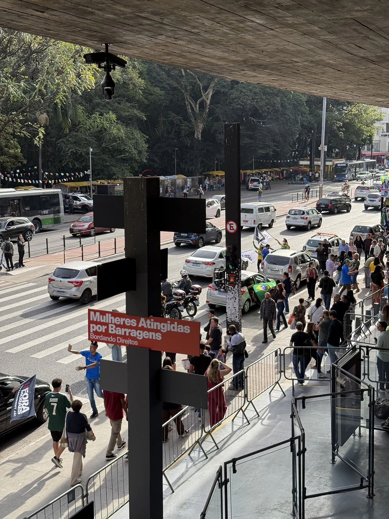 나의 숙소는 상파울루의 번화가인 파울리스타(Paulista)에 잡았고, 미술관을 갈 때는 걸어서 갔다. 길거리에서 지도를 보기 위해 핸드폰을 들면 범죄의 표적이 될까 봐 출발하기 전에 길을 외워 움직였다. 예를 들어, '횡단보도 세 블록까지는 직진이다' 이렇게 외워서 이동하고, 다음 길은 건물 안으로 들어가 다시 지도를 확인해서 길을 외우고 움직였다. 건물에 들어가면 입구에는 경호원들이 있었고, 슈퍼마켓 안에도 경찰이 있었다. 거리 곳곳에서 경찰이 많이 보여서 확실히 주변 경계를 많이 하며 다녀야 하는 곳이라는 생각이 들었다. 상파울루 시내의 모습이 대도시이면서 이국적인 모습들도 보여서 사진으로 남기고 싶었는데 바짝 쫄아서 사진을 많이 찍지 못했다.