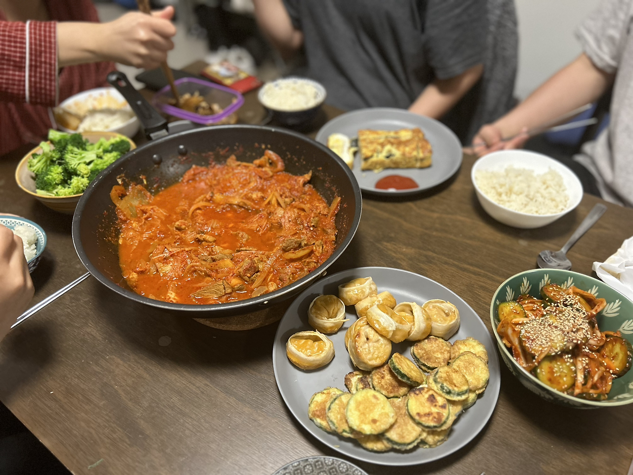 예전에 제주도 여행을 갔을 때 숙소에서 요리를 했었던 적이 있다. 그 때 주방의 도구부터 화력, 재료 등이 달라 음식을 제대로 망쳤었다. 그 기억 때문에 낯선 주방에서 메인 요리를 하는 건 부담이 되었다. 하지만 상황이 김치찌개만 하려는 사람이 없으니 그렇다면 내가 해보는 수 밖에!