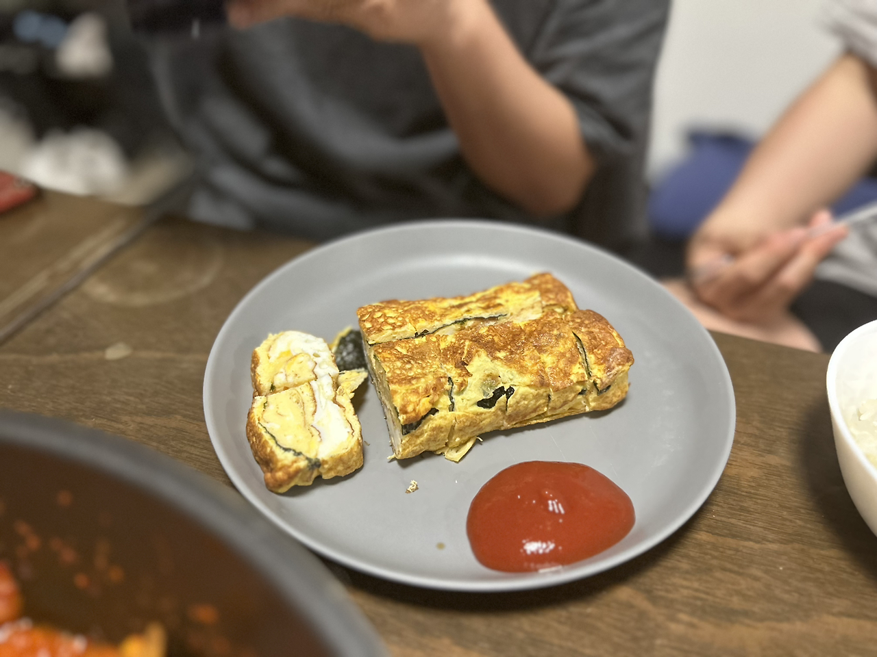 마지막 이유는 간장이 달랐다. 나는 늘 국간장으로 찌개 맛을 낸다. 친구 집에는 국간장이 없어서 일본 간장을 넣었다. 조리 방법과 넣은 재료가 달라지니 아무래도 집에서 해 먹던 맛은 아니었다. 나는 김치찌개만큼은 엄마 맛을 내는데 이건 아빠 맛이 난다. 아빠가 엄마 없을 때 다 때려 넣고 끓이는 맛.