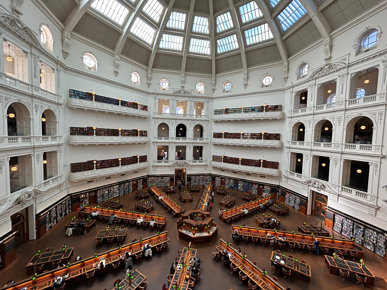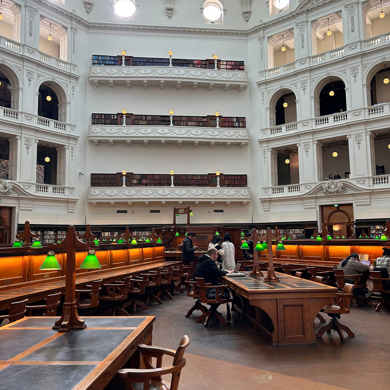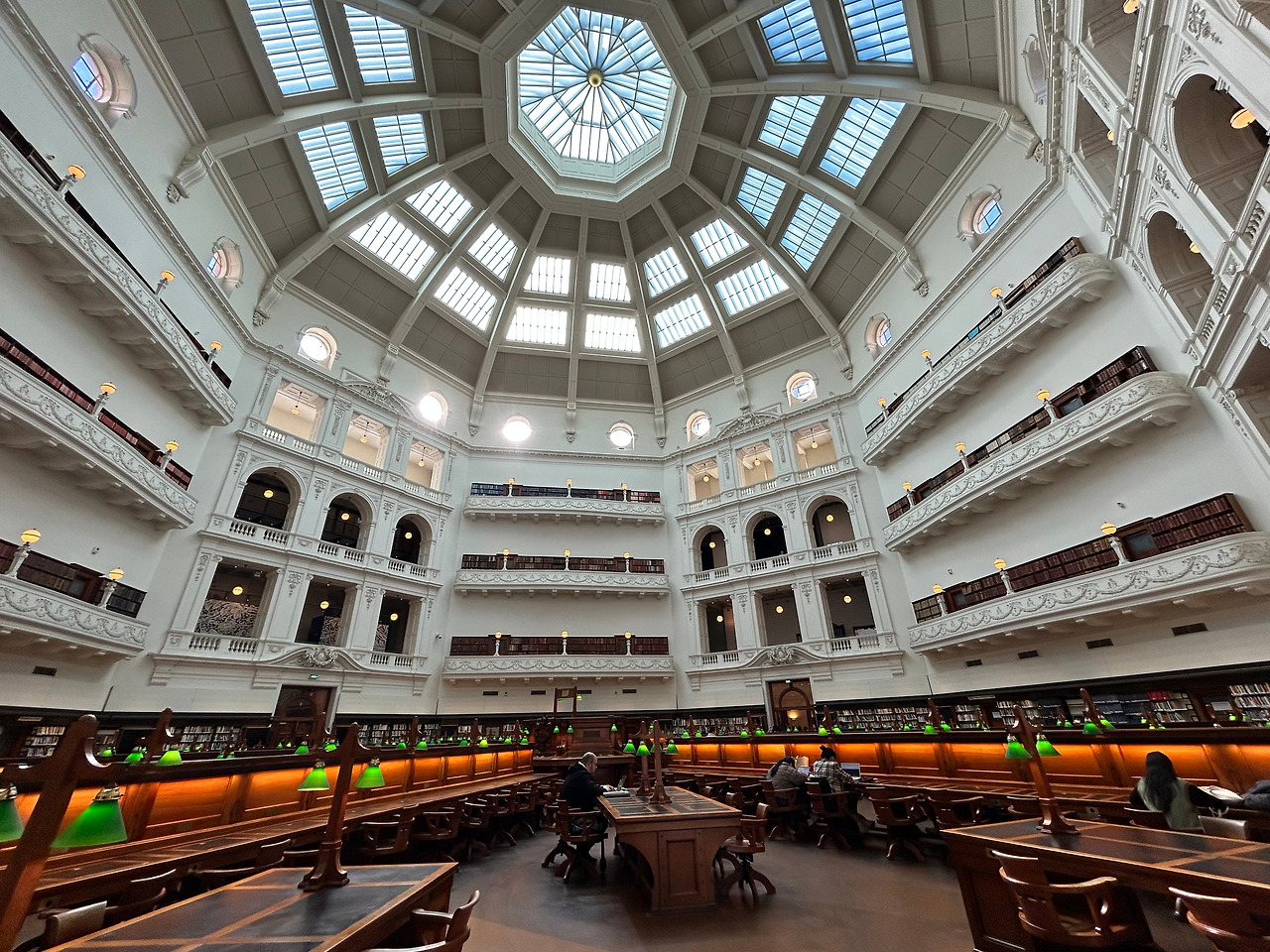 친구와 이 날의 일정은 멜버른 도서관만 가보자고 정했었다. 멜버른 도서관(State Library Victoria)은 번화가 중심에 있어 걸어가기에 좋다. 멜버른 시내를 걷다 보면 자연스레 보게 되기 때문에 이후 멜버른 시내를 걸어 다닐 때마다 도서관을 봤었다.