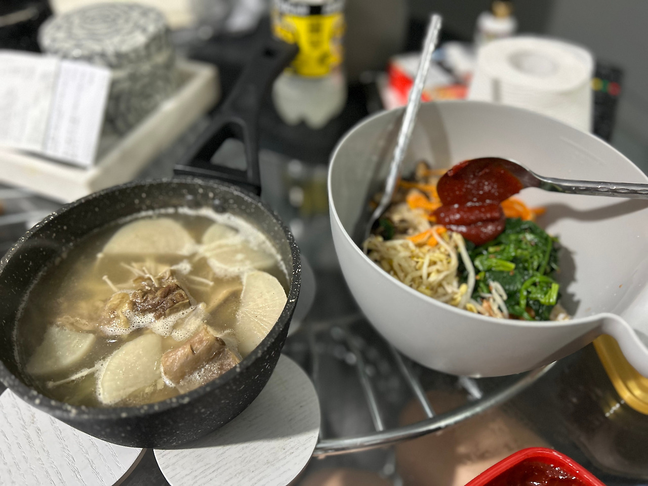 문득 어제 혼자 한인마트에 가서 사 온 고추장이 생각났다. 호주 한인마트에도 소고기 고추장은 없었다. 아쉬운 대로 작은 크기의 고추장을 샀었다. 이거 오늘 비빔밥 해 먹으라는 거구만? 내 말에 흔쾌히 친구가 비빔밥을 먹자고 했다. 아싸! 오늘 저녁은 비빔밥과 갈비탕이다.