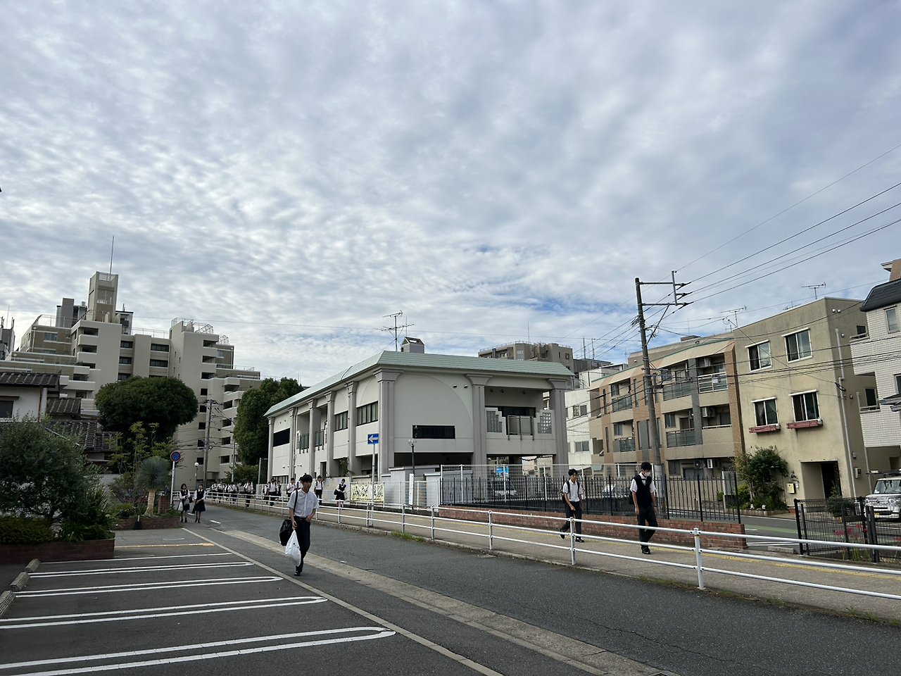 사립학교답게 지금까지 본 건물 중에 제일 최신식 건물이었다. 학교 사진을 찍고 싶었지만 아침 등교시간이라 정문에 학생 주임 선생님과 선도부 같은 친구들이 서서 등교 지도를 하고 있었다. 학교 담장도 높아서 운동장이나 다른 시설을 볼 수 없었다. 저 멀리 보이는 학교의 모습에 만족해야만 했다.