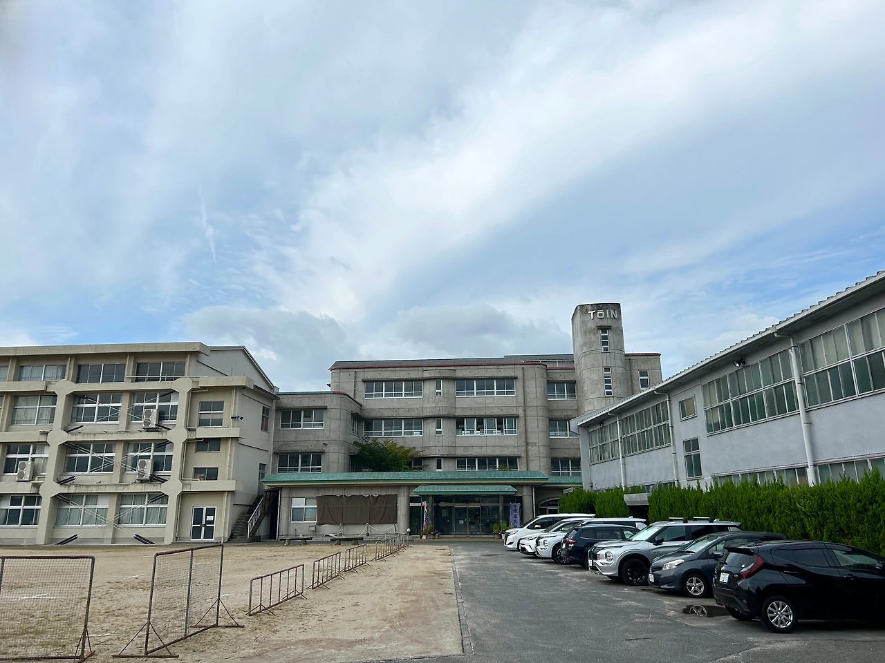 두 번째로 간 학교는 토인 고등학교(Tōin High School)다. 히타 고등학교보다는 운동장도 작고 학교 건물도 작았다. 그리고 제일 중요한 수영장은 보이지 않았다. 여기도 자전거 보관소는 잘 되어 있고 운동장에는 그물 울타리가 있었다. 야구를 하기엔 운동장이 작은 거 같은데 축구할 때 공 넘어가지 않게 하려고 있는 건가?