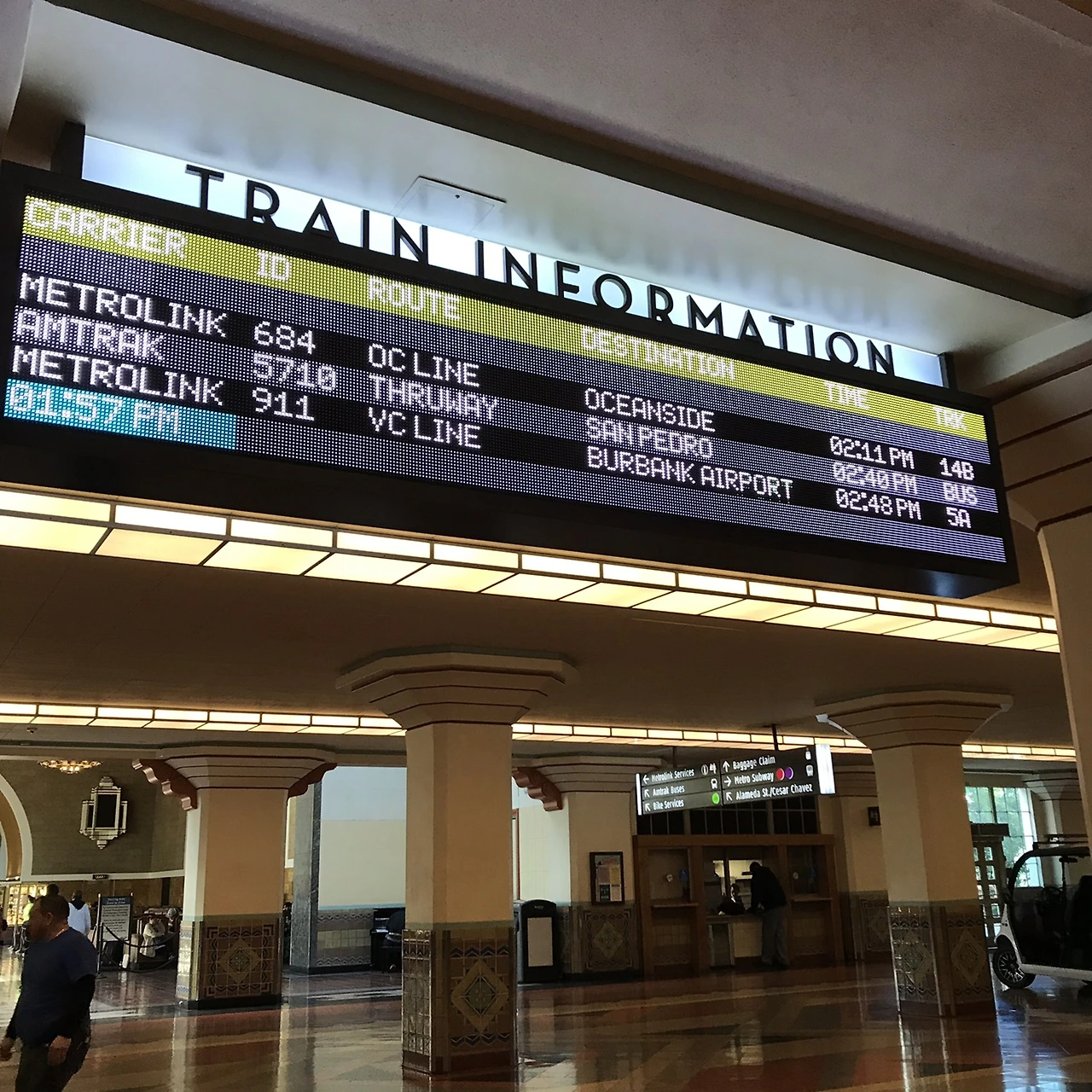 LA 여행을 마치고 샌디에고(San Diego)로 가기 위해 유니온 스테이션(Los Angeles Union Station) 역으로 향했다. 유니온 스테이션역에서 기차를 타고 다른 도시로 넘어갈 수 있다. 다른 도시로 가는 기차를 암트랙(Amtrak) 이라 부른다. 암트랙은 미리 홈페이지나 앱으로 예매할 수 있다. 역 안의 전광판과 표지판에서 'Amtrak' 을 찾아야 한다. 전광판에 'MetroLink' 도 함께 있었는데 'MetroLink' 를 따라가면 전철을 탈 수 있다. 전철은 지하철, 지상철 모두 있다.