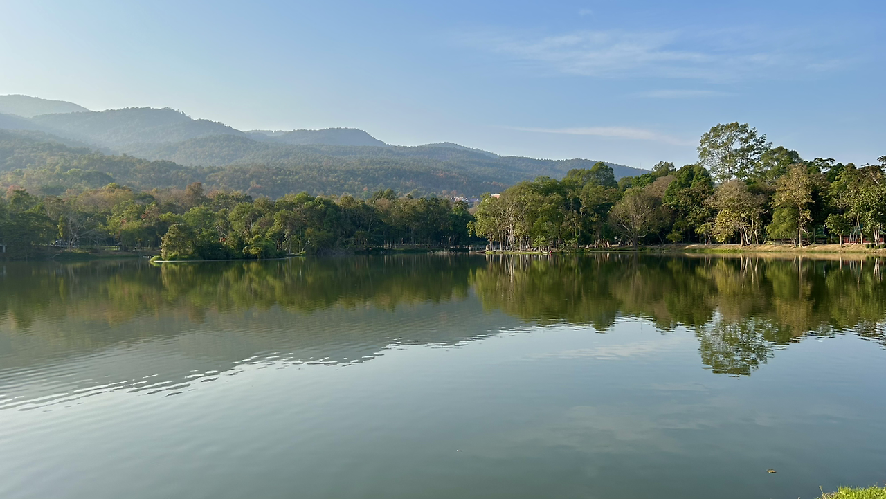 앙 깨우 저수지(Ang Kaeo Reservoir) 는 대학교 캠퍼스 내에 있는 저수지이다. 저수지 주변에 산책로가 조성되어 있어 학생들 뿐만 아니라 주민들도 공원으로 많이 찾는 곳이다. 대학교 입구에서 자전거를 빌린 이유는 저수지 주변을 자전거로 돌아다니기 위해서였다. 그러나 저수지 입구에는 자전거 통행금지 팻말이 붙어 있었다. 할 수 없이 자전거는 금지 팻말 옆에 세워두고 저수지까지 걸어갔다.