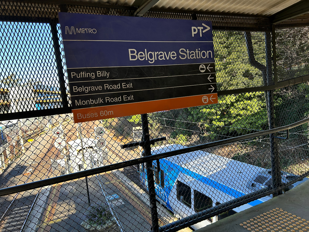 다음 날, 멜버른 근교 관광지 중 하나인 퍼핑빌리(Puffing Billy Railway)로 향했다. 보통 투어나 렌터카로 많이 가는데 우리는 전철을 타고 갔다. 멜버른 센트럴역에서 벨그로브역(Belgrave)까지 직행으로 1시간 남짓이면 도착한다.