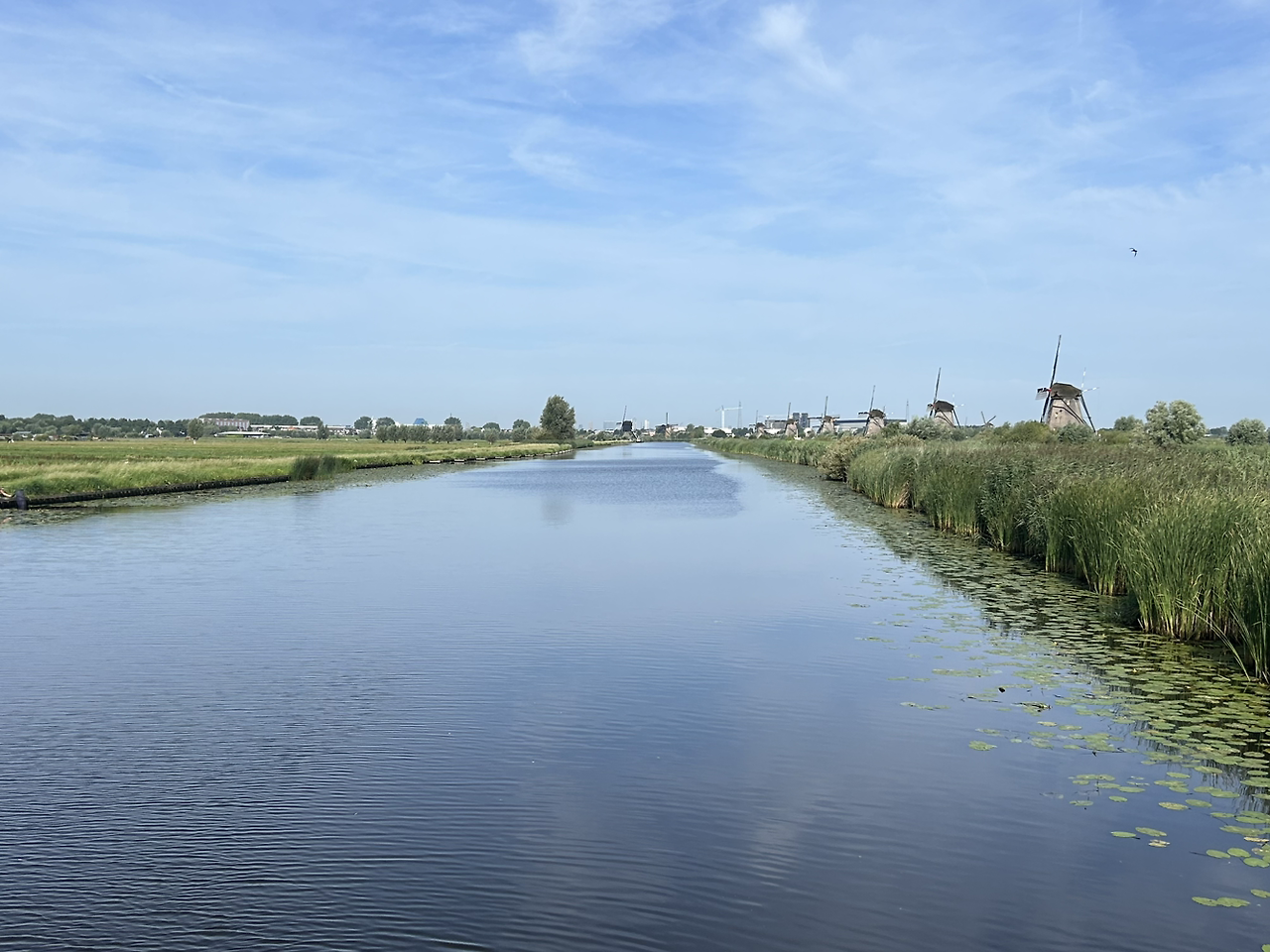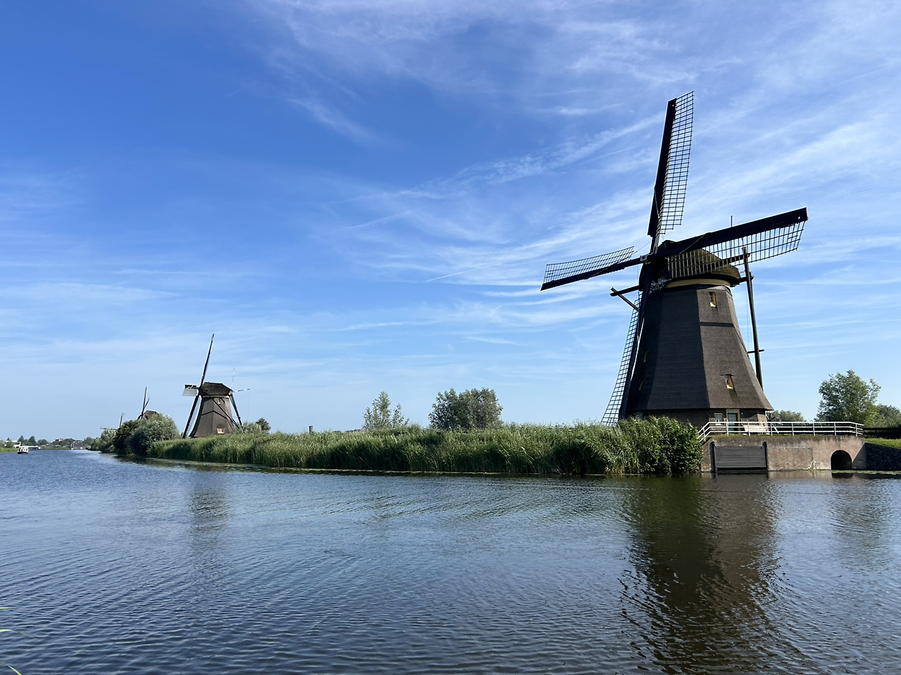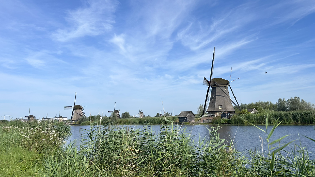 처음 본 풍차의 모습은 새로웠고, 들판과 운하와 함께 어우러진 풍차의 모습은 자연스럽고 아름다웠다. 목가적이다라는 말이 절로 나왔다. 마음을 평화롭고 고요하게 만들어주는 풍경이었다. 풍차라는 것을 생각하고 만들기까지 얼마나 많은 노력이 필요했을까 싶었고, 그들의 노력에 박수를 보내고 싶었다.