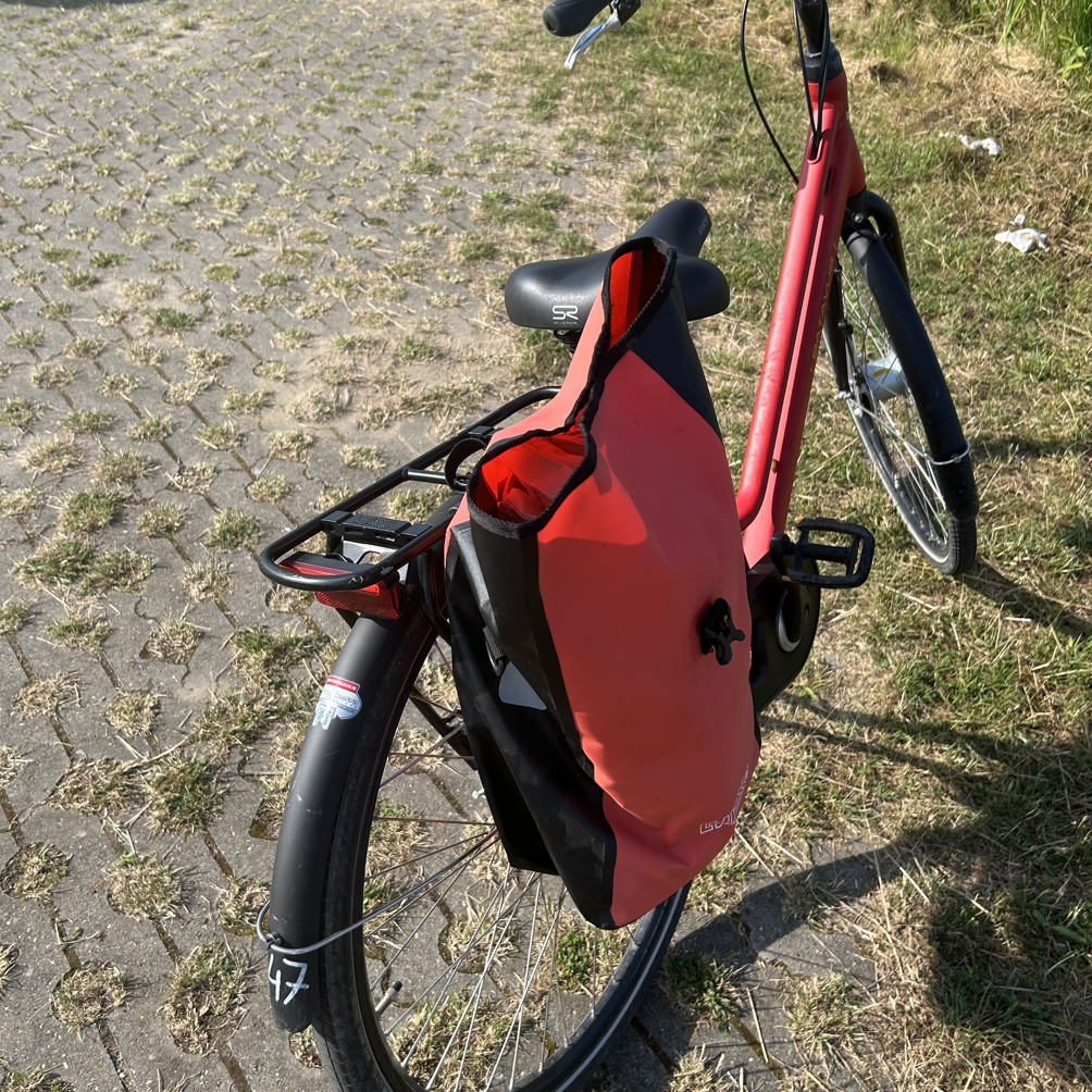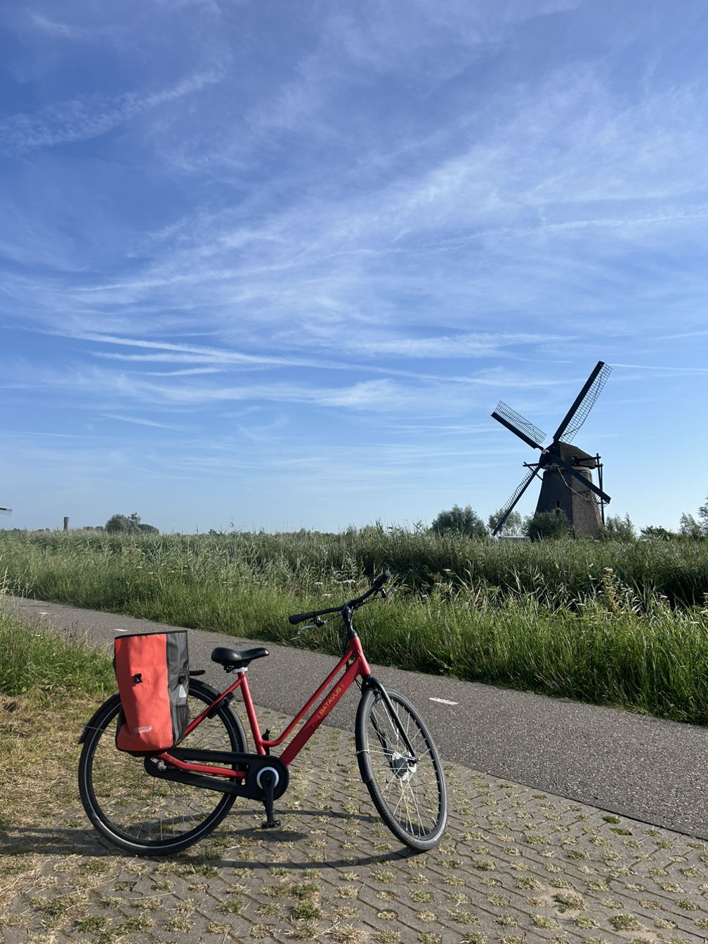 킨데르데이크 초입에 자전거 대여점이 있다. 자전거를 빌리기 위해 대여점에 갔다. 그날 나는 외투와 에코백을 들고 있었다. 그래서 자전거를 고를 때 바구니가 있는 자전거를 찾고 있었는데, 대여점 사장님이 바구니가 없는 자전거를 가지고 오셨다. 바구니가 있는 자전거를 달라고 하자, 사장님은 자전거 옆에 빨간색 가방을 달아주었다. 이런 기발한 물건이 있었구나? 자전거 가방에 짐을 넣고 너무 만족스러워서 기쁨에 찬 목소리로 외쳤다.