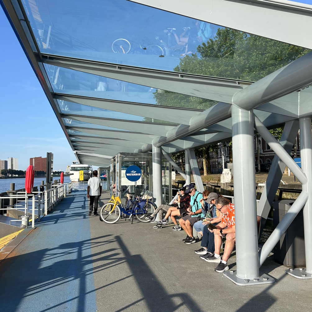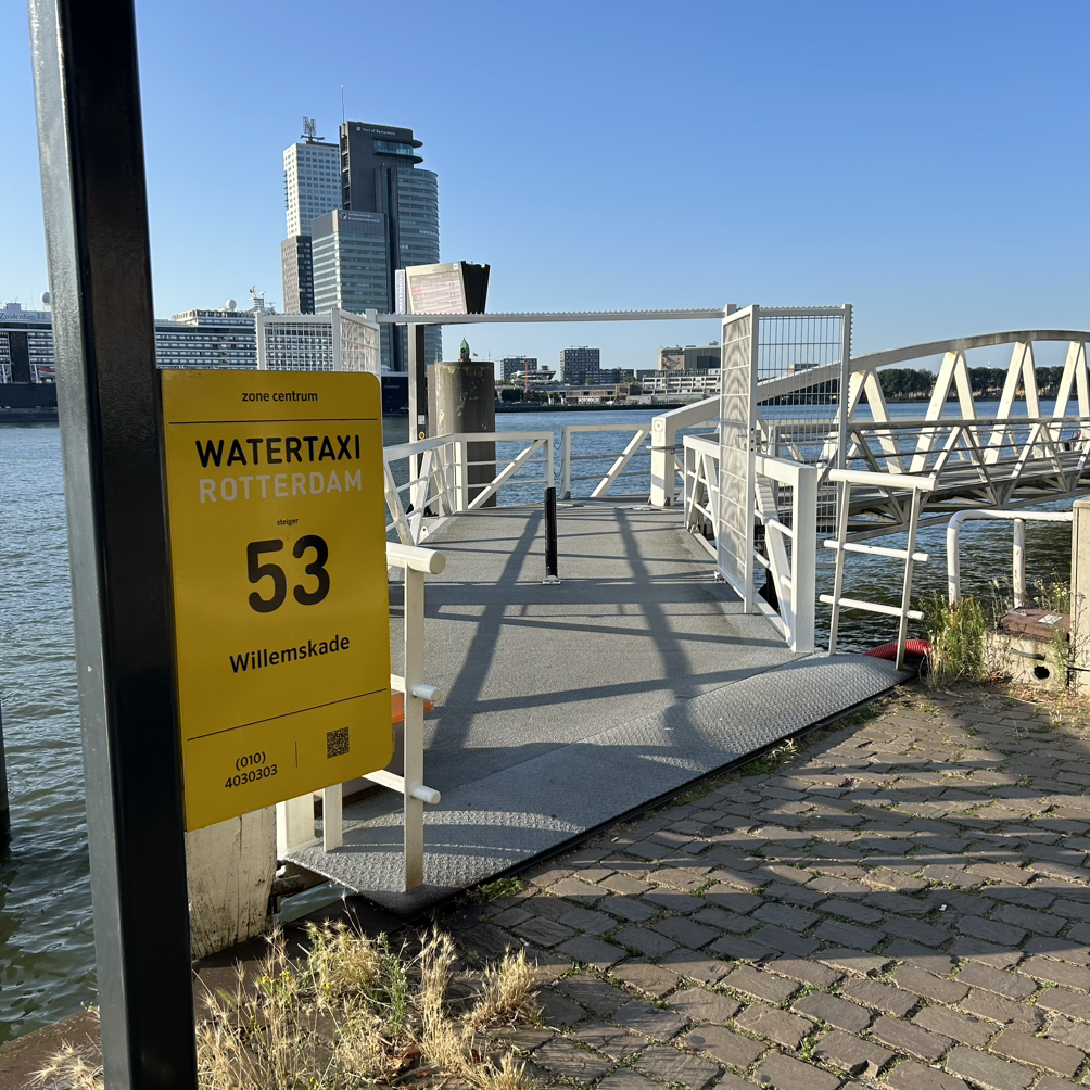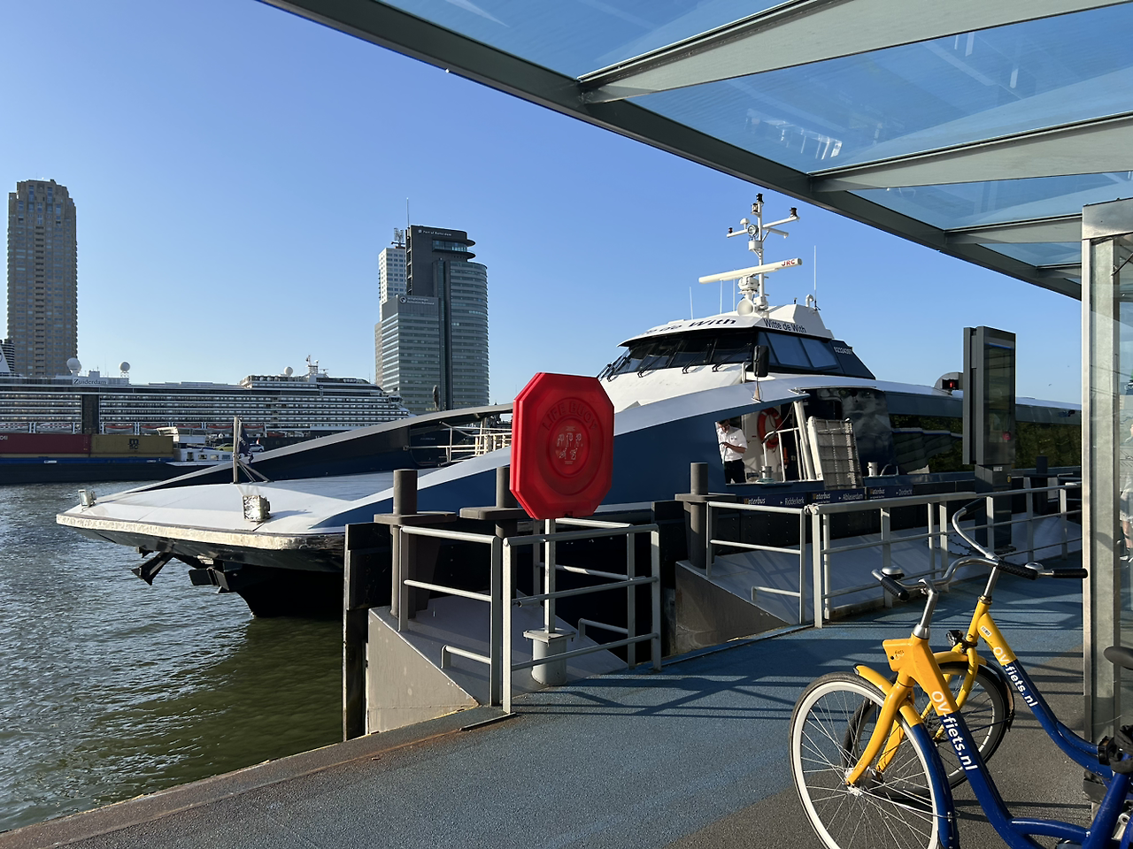 로테르담에서 수상 버스를 타려면 수상 버스 정류장(Rotterdam, Erasmusbrug) 으로 가야 한다. 아래 사진처럼 구글 맵에서 수상 버스 정류장은 배 모양의 그림으로 표시되어 있다. 니우어마스 강(Nieuwe Maas) 위에 있는 수상 버스 정류장(Rotterdam, Erasmusbrug) 에는 20번과 21번 버스가 정차한다. 두 버스의 노선은 다르다.