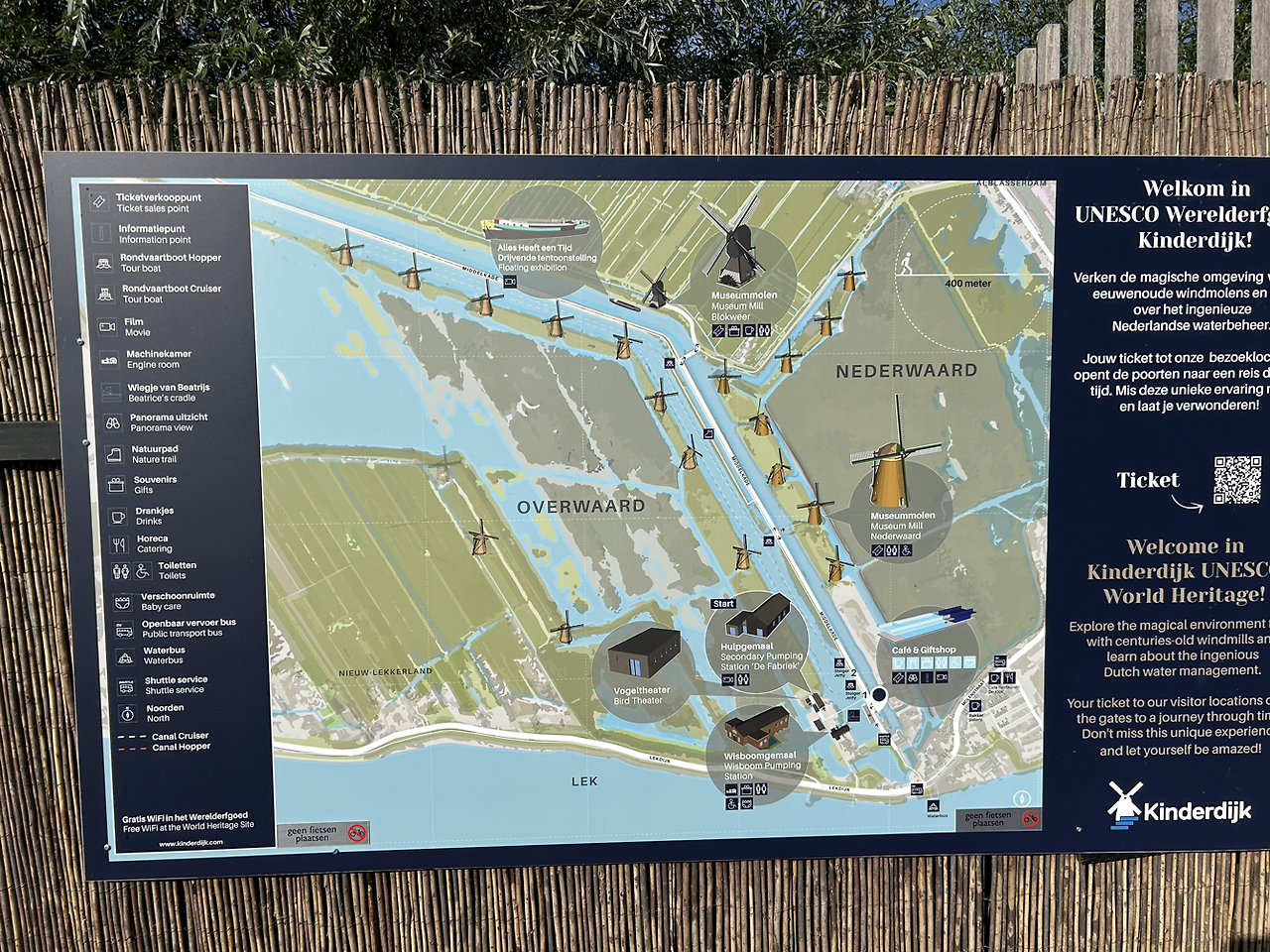 킨데르데이크(Kinderdijk) 는 1997년 세계문화유산으로 등재된 풍차가 있는 마을이다. 과거 네덜란드 사람들은 홍수 피해가 많은 킨데르데이크 땅에 정착하기 위해서 배수 시설을 만들고자 노력했다. 13세기에는 여러 수로를 만들어서 물을 강으로 흘려보내는 배수 시스템을 만들었다. 이때 만들어진 수로를 킨데르데이크(Kinderdijk) 에 가면 함께 볼 수 있다. 그러나 15세기에 다시 큰 홍수로 인해 재해를 입으면서 배수 시설에 대한 새로운 고민이 생겼다고 한다.