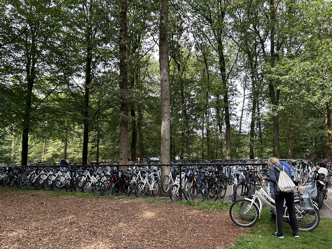호헤 벨루베 국립공원(De Hoge Veluwe National Park) 은 70만평이다. 엄청 크다. 공원 입구에서 하얀색 자전거를 무료로 빌려서 탈 수 있다고 한다. 자전거를 타고 공원을 다닐 계획이라면 너무 무리하지 않는 게 좋을 것 같다. 처음에는 나도 자전거로 공원을 돌아볼까 했었는데 4시간 밖에 못 잔 상태라 자전거까지 타면 다음 여행 일정들에 너무 지장이 생길 거 같아 참았다. 미술관 근처 자전거 보관소에는 하얀색 자전거들이 잔뜩 보였다.