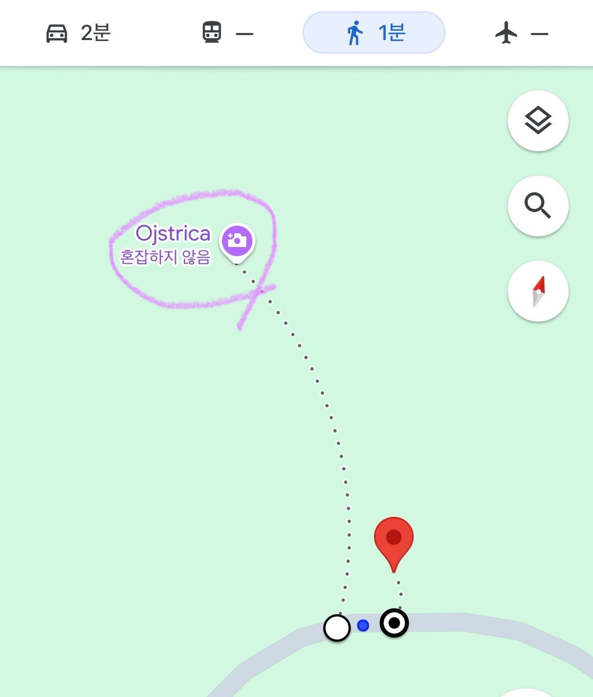 블레드 호수 가운데에는 섬(Bled Island) 이 있는데, 그 모습이 굉장히 아름다웠다. 섬(Bled Island) 까지 다 나오는 블레드 호수(Lake Bled) 를 찍고 싶었다. 그런 사진 명소를 찾다 보니 오이스트리차(Ojstrica) 라는 곳을 알게 되었다. 그때만 해도 따로 명소로 등록되어있지 않았어서 구글 맵으로 주소를 검색하여 갔었다.