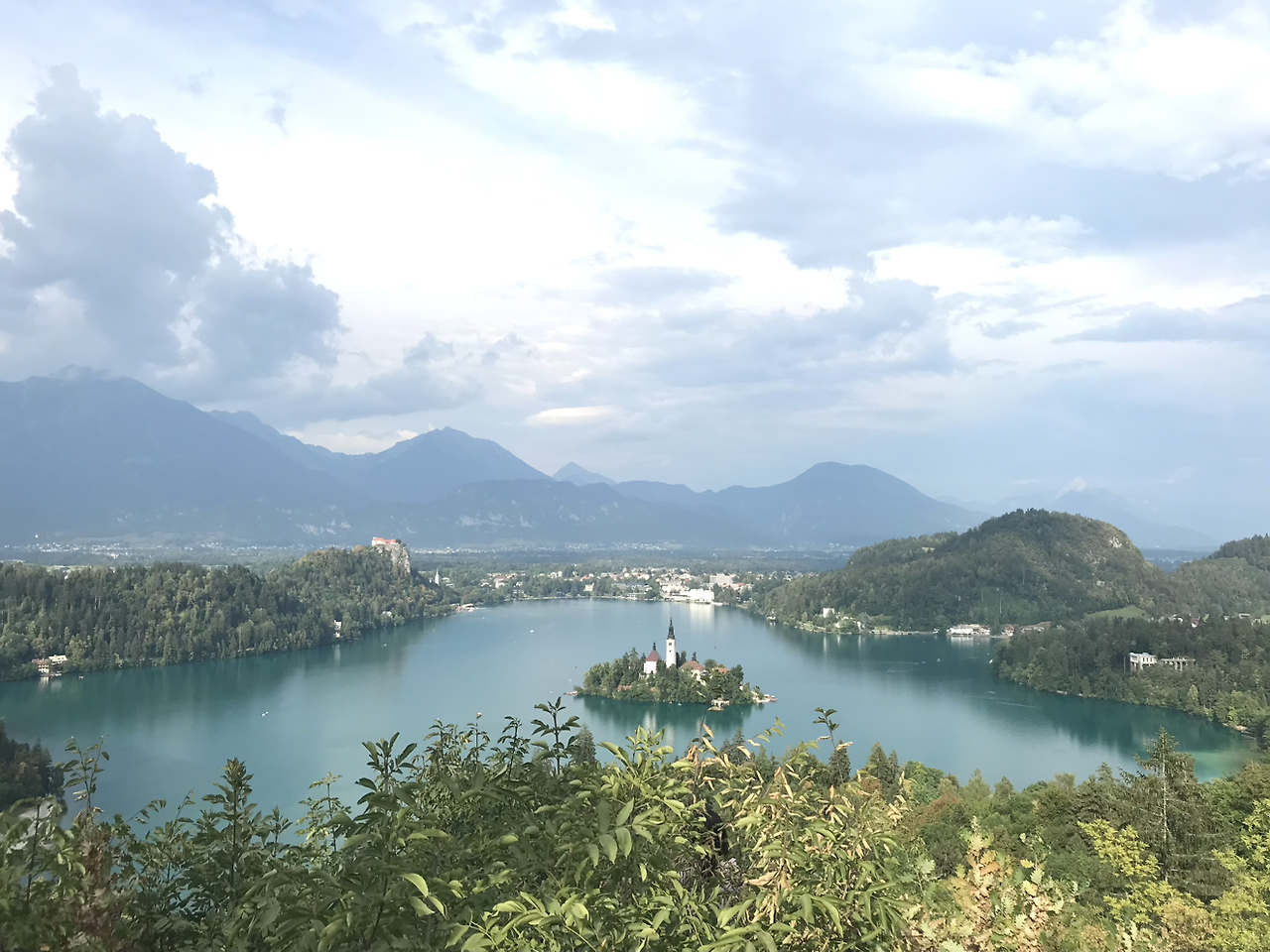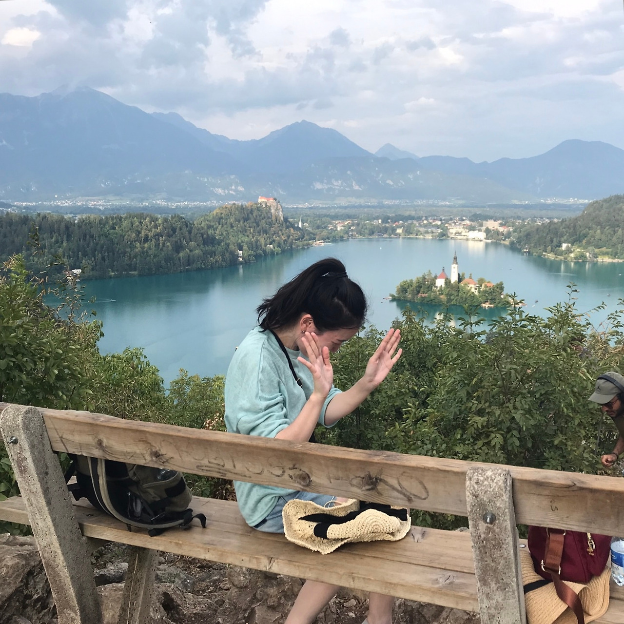 푹푹 빠지는 흙을 헤치고 숨을 헐떡이며 정상에 올라가자, 블레드 호수와 블레드 섬이 한눈에 들어왔다. 산 길을 오르기로 결정한 나 자신을 매우 칭찬했다. 도전하지 않았다면 이런 값진 풍경은 담을 수 없었겠지. 그래서 고비가 있고 힘들 때가 있어도 여행을 하게 되는 것 같다.