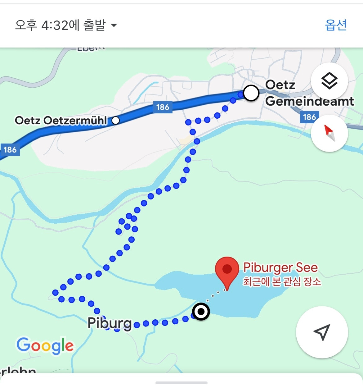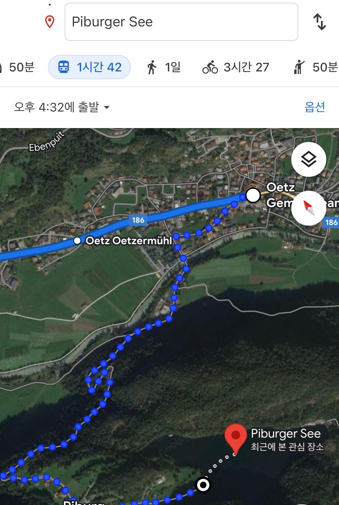 인간은 같은 실수를 반복한다고 하지. 이번 오스트리아 여행에서도 슬로베니아 여행 때와 같은 일이 있었다. 오스트리아 인스부르크(Innsbruck) 에서 피벅 호수(Piburger See) 를 가려고 길을 나섰다. 참고로 오스트리아의 호수는 이름 뒤에 "See" 가 붙는다. 호수를 가려면 이름에 "See" 가 있는지 찾으면 된다. 피벅 호수(Piburger See) 까지는 총 1시간 50분 정도 걸리고, 기차와 버스를 환승하여 40분가량은 걸어가야 하는 여정이었다. 이 정도 여정쯤이야 거뜬하지 싶었다.