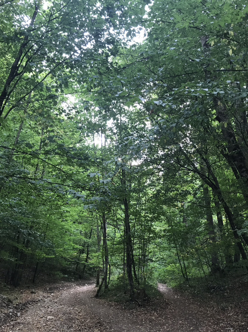 길이 안 보였던 이유는 바로 산 길을 올라야 했기 때문이다. 마을까지 잘 이어지던 길과는 다른 숲 속이 갑자기 나오니까 그때부터 어디로 가야 할지 길 찾는 게 어려웠다. 방향을 맞춰 차근차근 길을 보니, 저 너머 나무 사이에 오르막 길이 보였다. 저 산길을 올라야 하구나? 주변에 사람도 없고, 갔다가 뭔 일 나는 거 아닌가 살짝 걱정됐었다. 그래도 여기까지 왔는데 조금 올라가 보고 다시 생각해보자 싶었다. 그렇게 샌들로 산을 올랐다.