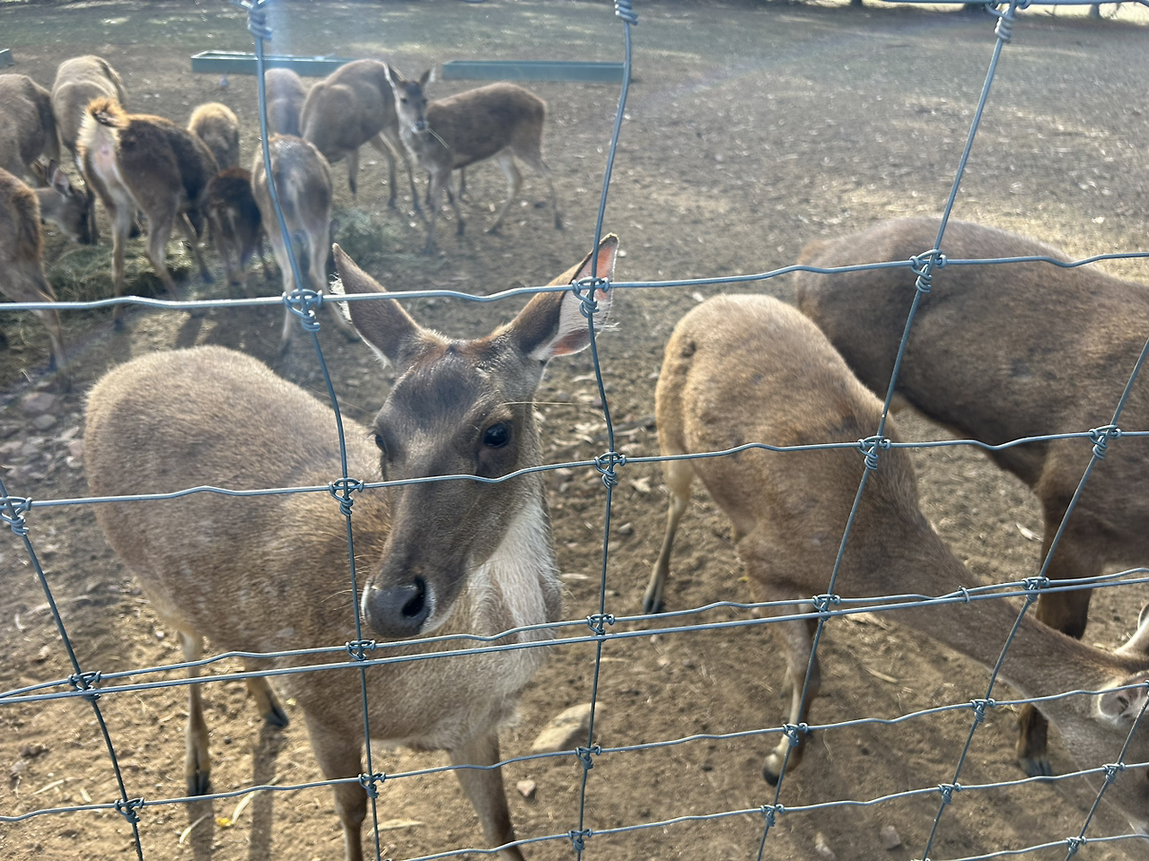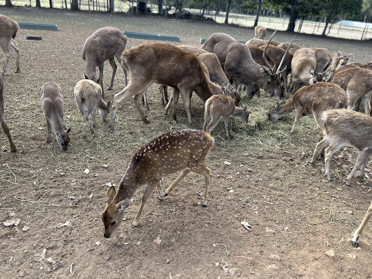 이 캠핑장은 이름처럼 사슴을 볼 수 있다. 캠핑장 옆에 사슴농장이 있다. 농장 주인이 아침에 사슴 먹이를 줄 건데 보고 싶으면 오라고 해서 따라갔다. 아침에 먹이 주는 시간에 가면 사료를 사지 않고 가도 먹이 주기 체험을 해볼 수 있다.