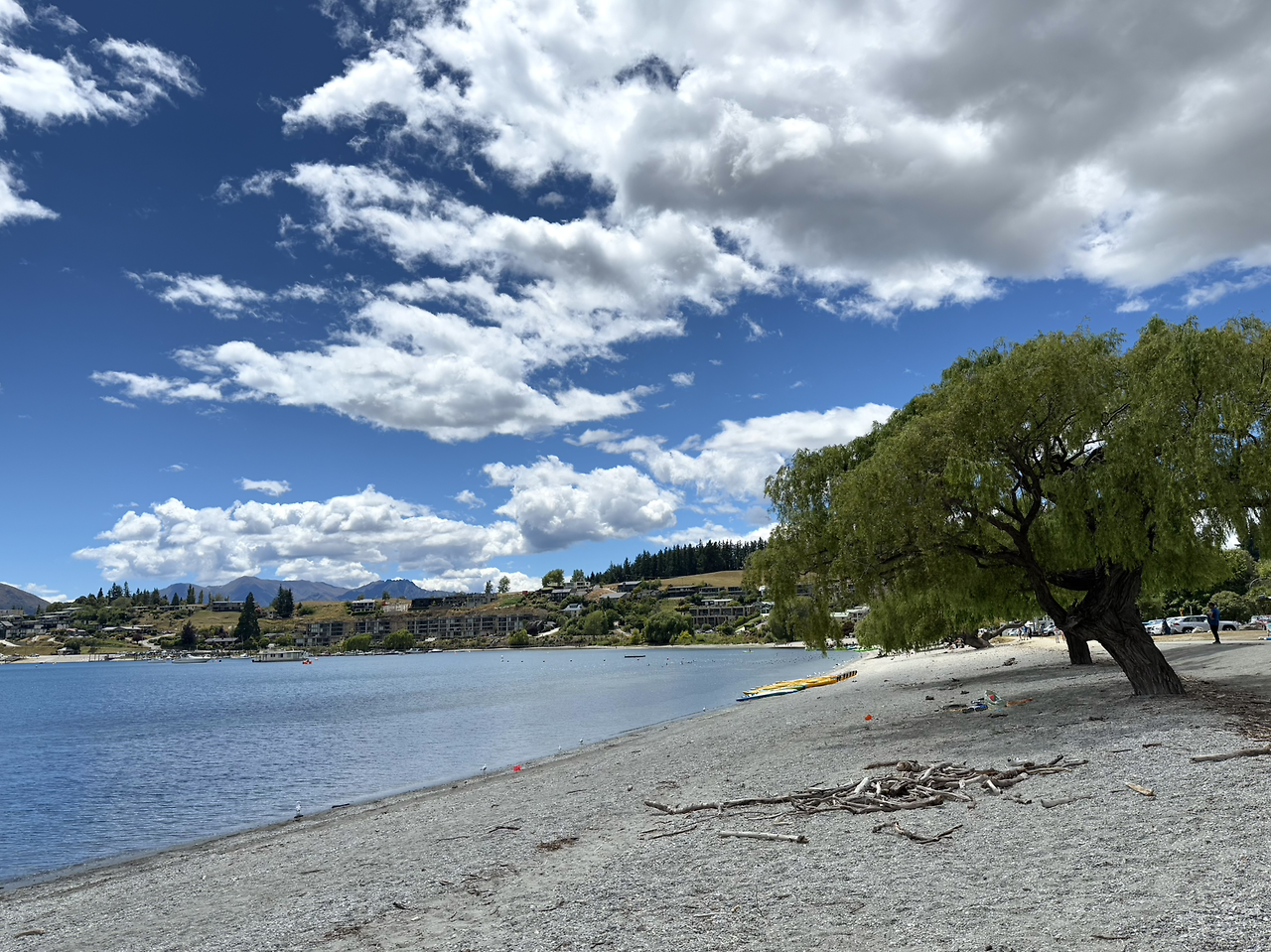 숙소 체크인 시간까지 시간이 남아서 우리는 곧장 와나카 호수(Lake Wanaka) 로 갔다. 호수의 잔잔한 물결과 눈앞에 펼쳐진 풍경을 보자 마음이 몽글몽글해졌다. 여기가 뉴질랜드인가? 꿈인가? 친구들과 함께 이 먼 곳까지 와있다는 사실이 믿기지가 않았다. 나무 아래에 돗자리를 깔고 누워 주변을 바라보았다. 아무 말 없이 친구들의 모습과 풍경을 함께 바라보며 어안이 벙벙한 지금을 즐기려고 했다.