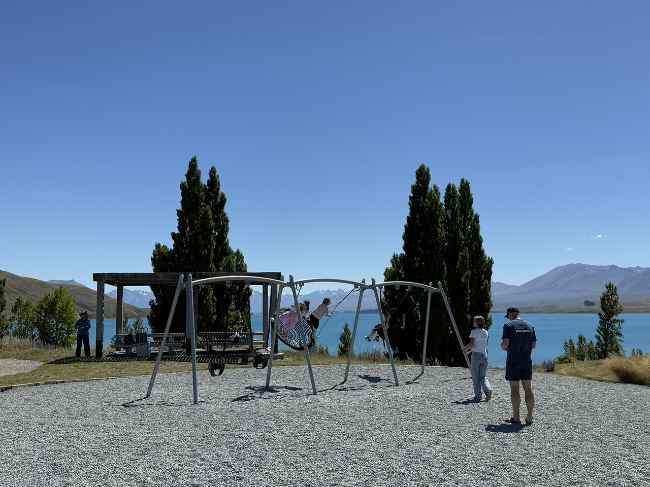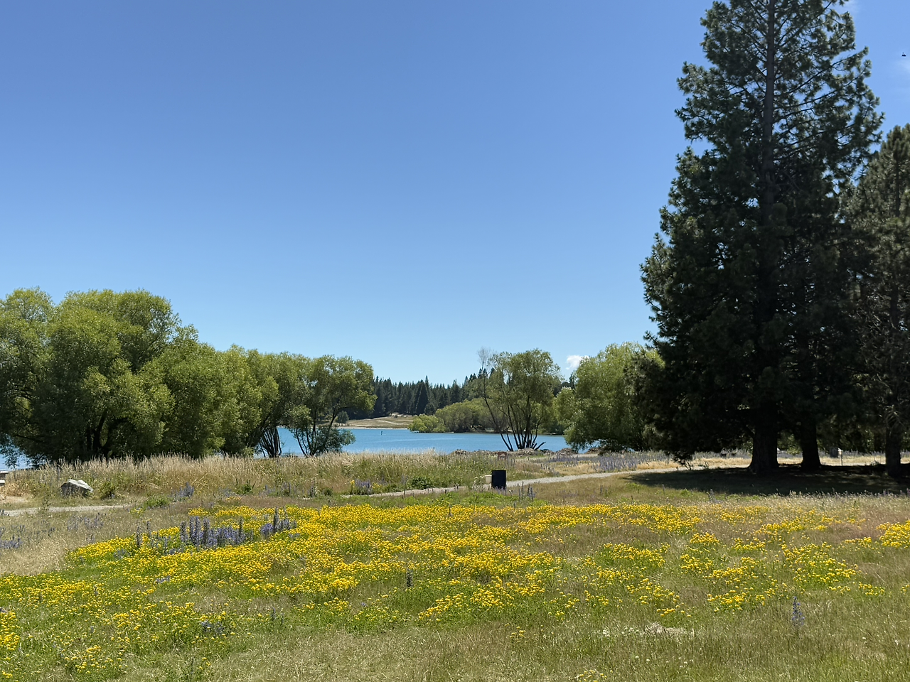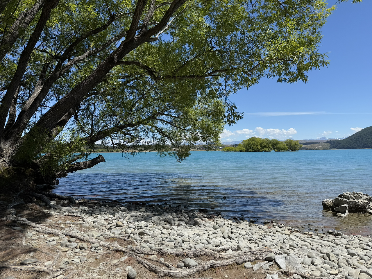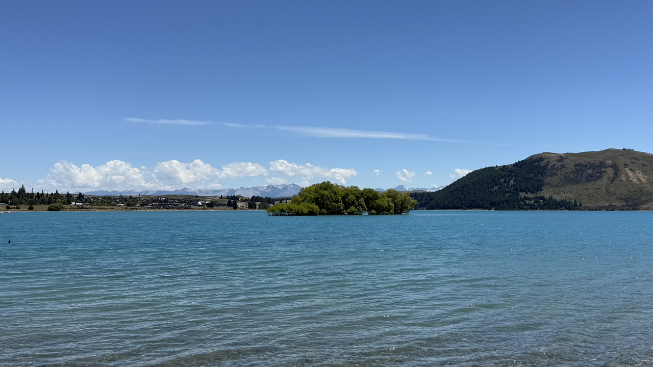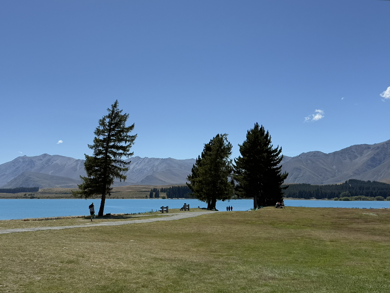 테카포 호수에서 수영할 수 있는 호숫가로 자리를 옮겼다. 테카포 호수는 이전 글에서 나온 와나카 호수(Lake Wanaka) 보다 물이 더 파랗다. 가만히 바라만 보고 있어도 마음이 평화로워진다.