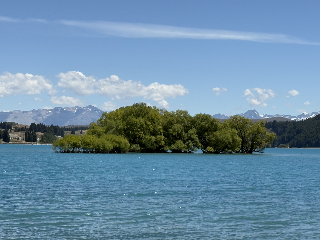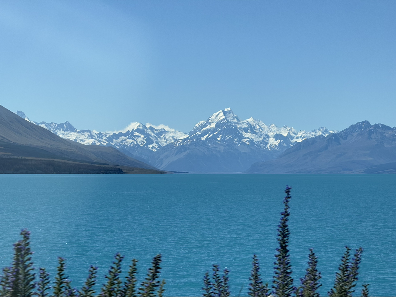 점심 식사 후, 다시 테카포(Tekapo) 를 향해 갔다. 테카포를 가는 길에 푸카키 호수(Lake Pukaki) 가 보였다. 차창 너머로 펼쳐진 설산과 호수가 어우러진 풍경은 정말 아름다웠다.