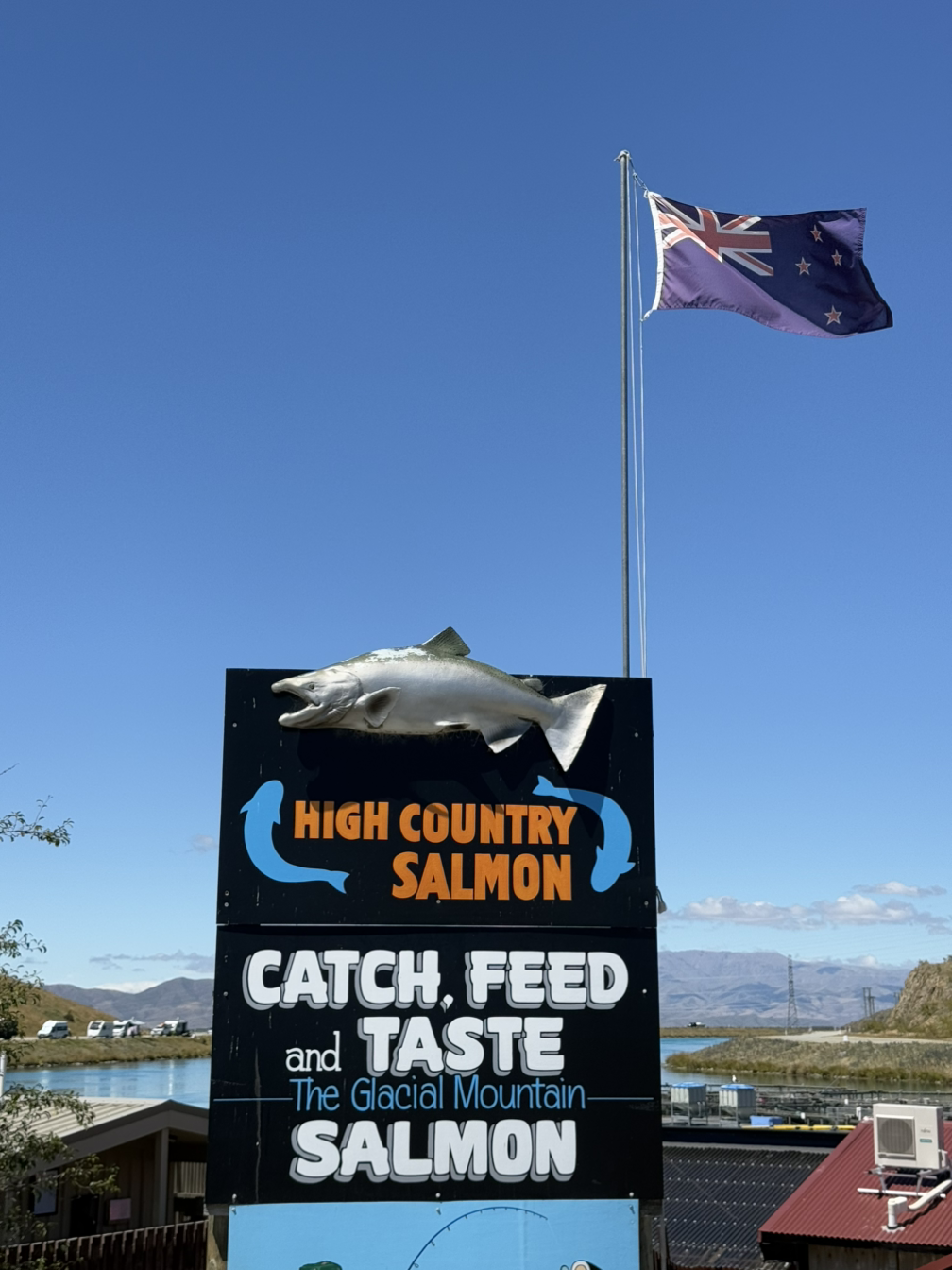 하이 카운트리 살몬(High Country Salmon) 은 트위젤(Twizel) 마을 근처에 위치한 연어 요리 음식점이자 체험장이다. 우리는 점심 식사를 위해 이곳을 갔다. 가서 보니 연어 양식장을 함께 운영하고 있어서 살아있는 연어들을 직접 볼 수 있었다. 예약을 하면 물고기 잡기 체험도 할 수 있다.