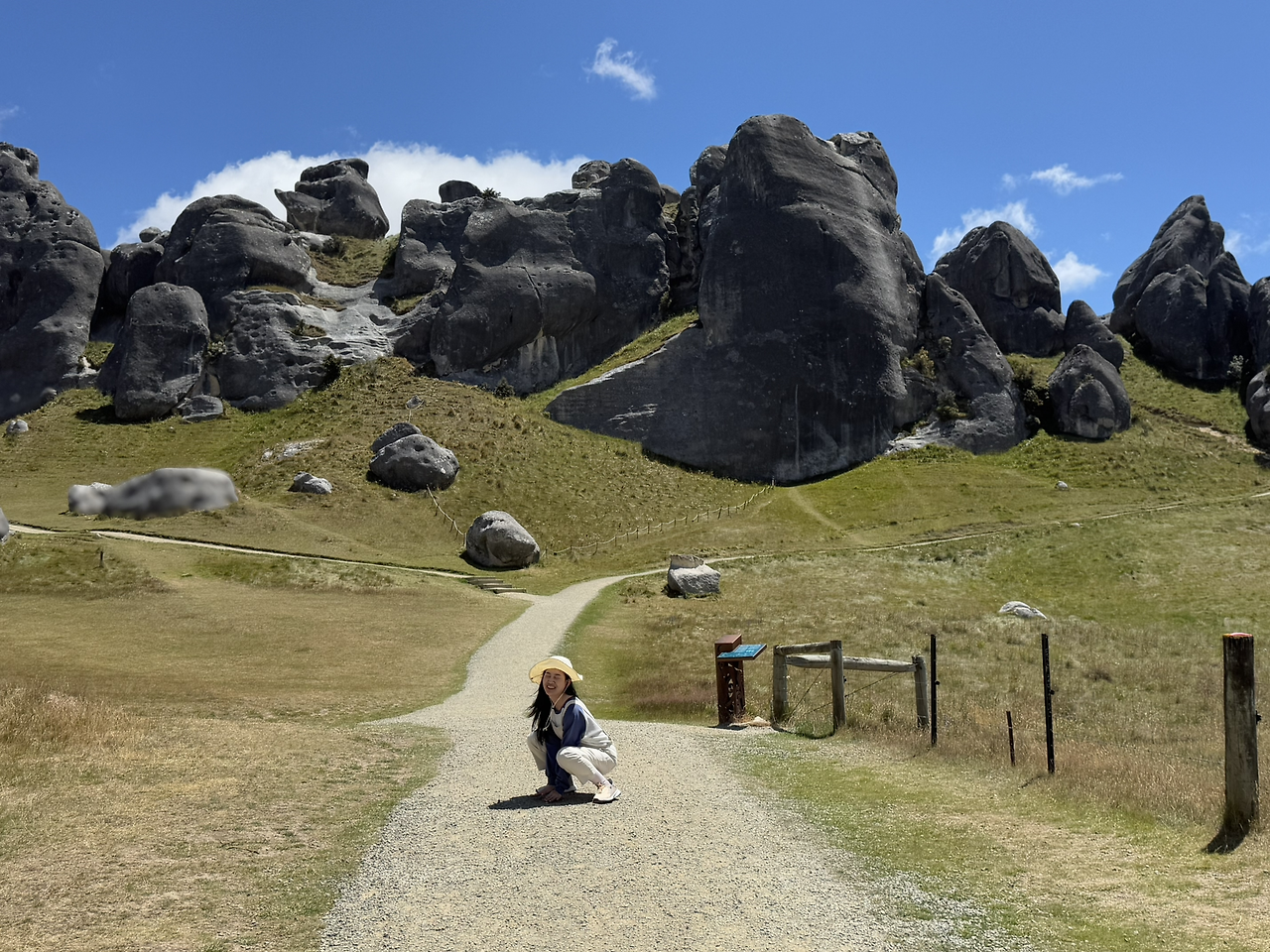 캐슬힐을 가려면 '캐슬 힐/쿠라 타휘티 보호관리지구(Castle Hill / Kura Tawhiti Conservation Area)' 로 검색해야 주차장이 있는 진입로를 쉽게 찾을 수 있다. 입구에는 주차장과 화장실이 있다. 주차장에 차를 세우고, 친구들은 급하게 선크림을 발랐다. 오늘은 흐릴 줄 알았는데, 캐슬힐에 오니 해가 떴다. 지난번 마운트쿡 트레킹 때 두피가 탔던 친구는 머리에도 선크림을 발랐다. 나랑 다니면 이런 일이 많아. 미안하구나.