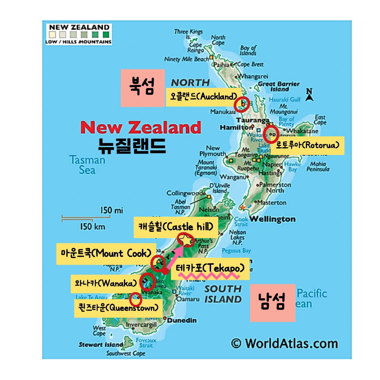 ☞ 캐슬힐을 가려면 캐슬 힐/쿠라 타휘티 보호관리지구(Castle Hill / Kura Tawhiti Conservation Area) 로 검색해야, 주차장이 있는 진입로를 쉽게 찾을 수 있다.