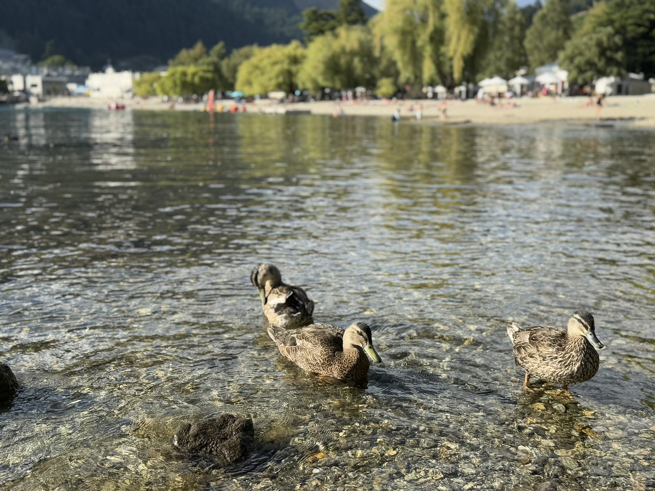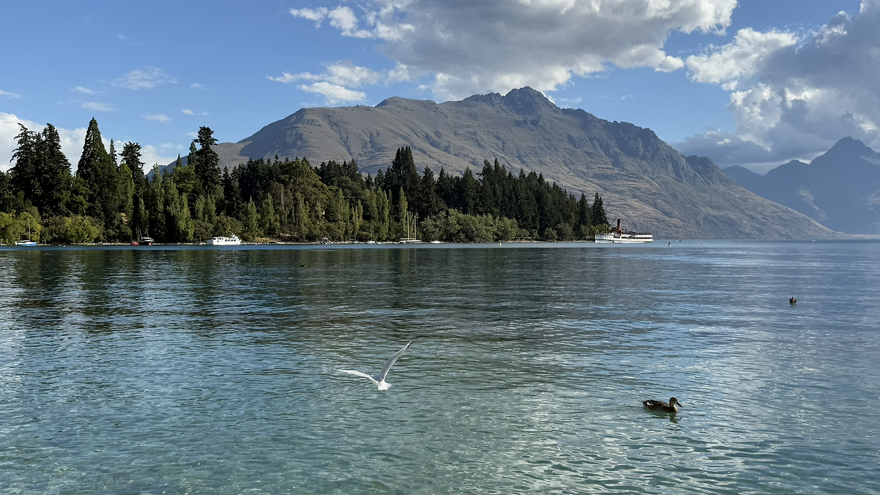 비치 옆에는 공원이 있었다. 우리는 호수를 바라보며 공원 산책로를 따라 천천히 걸었다. 뉴질랜드 남섬을 여행하며 여러 개의 호수를 봤지만 와나카, 테카포, 푸카키 호수와는 물빛이 또 달랐다. 와카티푸 호수(Lake Wakatipu) 의 물빛은 초록빛이 더 많이 도는 색깔이었다. 거 참, 신기하단 말이야.