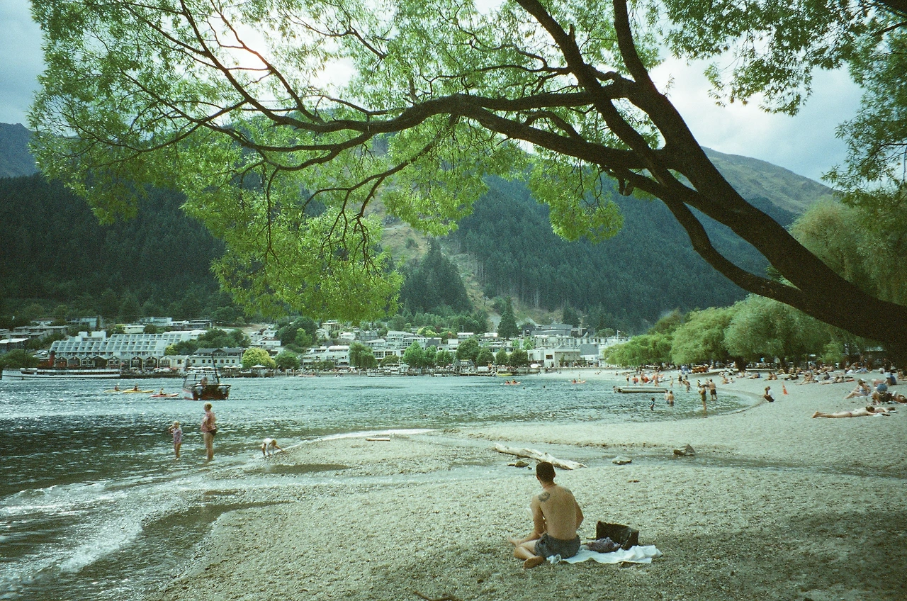 퀸즈타운 베이 비치(Queenstown Bay Beach) 와 와카티푸 호수(Lake Wakatipu)