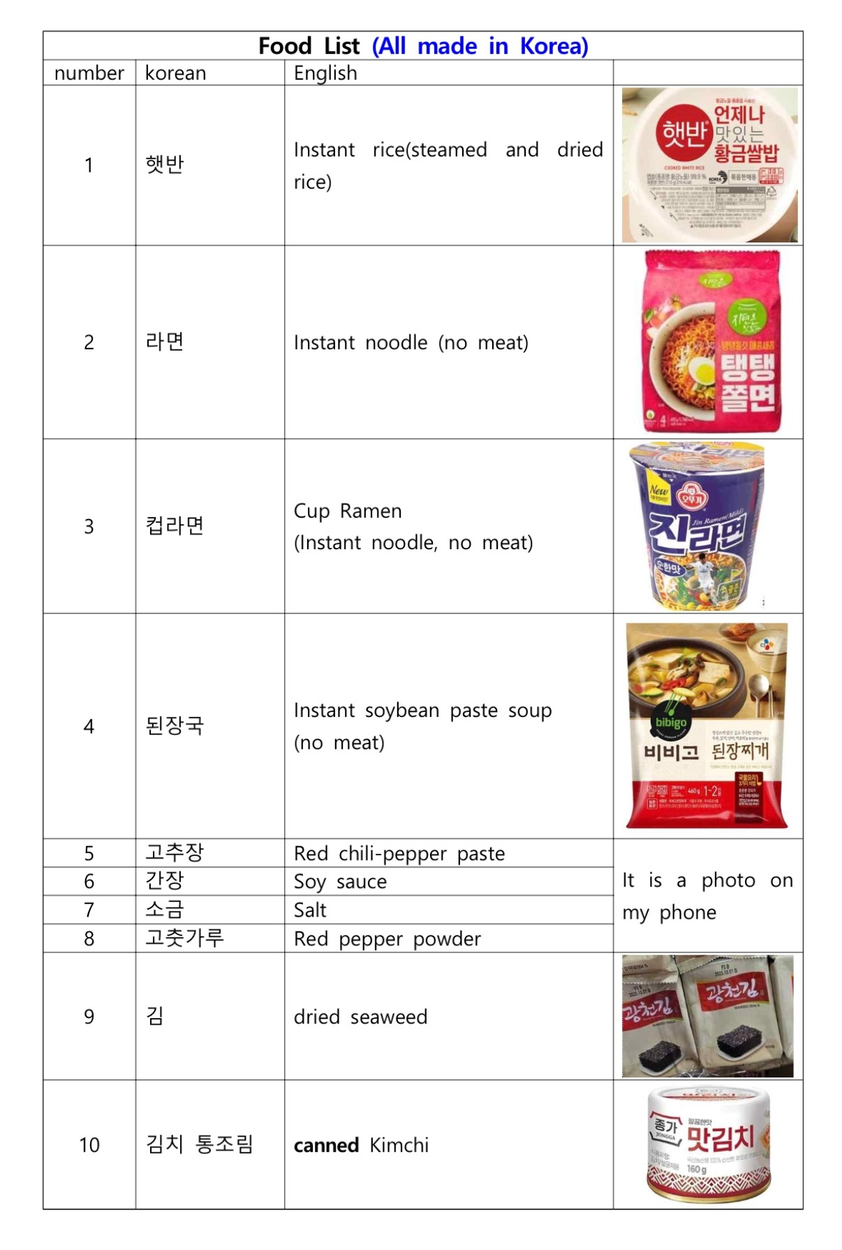 입맛에 맞춰 한국에서도 철저히 한식만 하는 나는, 이번 여행에서도 한식을 요리할 준비를 했다. 식품에 대한 검열이 까다로운 뉴질랜드 공항에서 식품들을 뺏기지 않기 위해 식품 목록을 만들고, 한국 양념들을 소분하여 챙겼다.