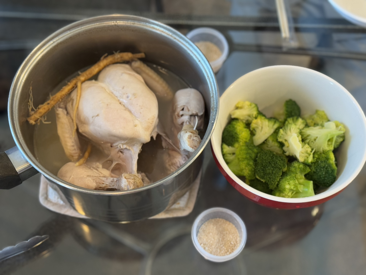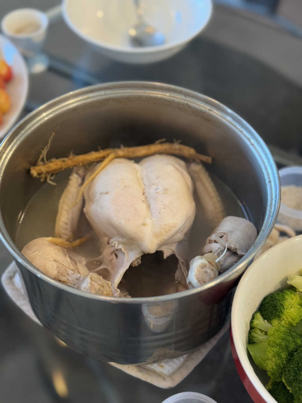 백숙을 하기 위해 나는 한국에서 황기와 비장의 무기 오복 가위를 챙겨 왔다. 닭 껍질을 잘 벗기려면 가위가 짱이다. 외국 사람들은 이렇게 편한 주방 가위를 왜 안 쓰나 모르겠다. 백숙은 의외로 간단한 요리다. 먼저 황기를 끓여 황기 물을 만들고, 손질한 닭을 넣어 40분 이상 푹 끓이면 된다.