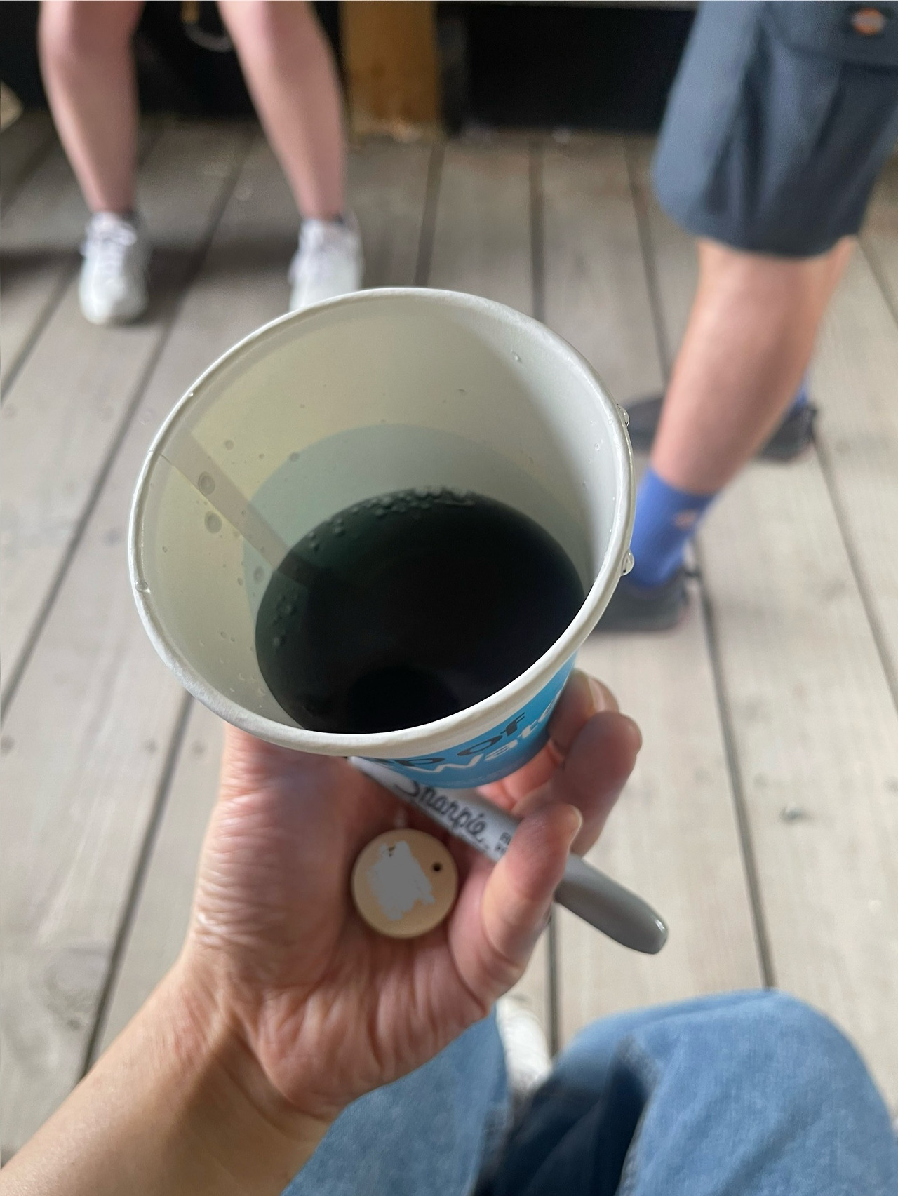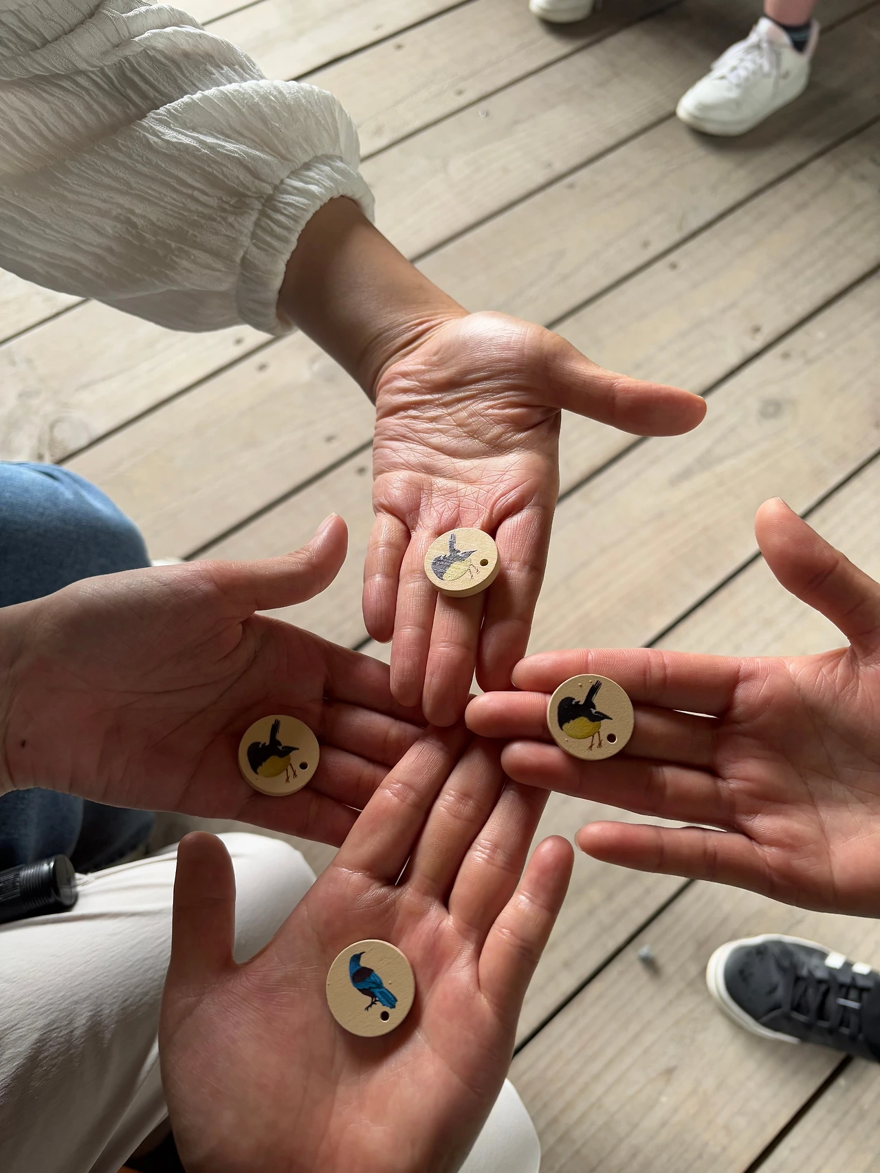 숲 속 사이에 나무로 만든 쉼터가 있었다. 쉼터에서 뉴질랜드 식물로 만든 차를 마셨다. 우엉차와 고로쇠 물이 섞인 거 같은 맛이 났다. 그리고 뉴질랜드 숲에서 볼 수 있는 새 그림이 그려진 나무 토큰을 하나씩 받았다. 쉼터의 벽 한편에 모금판이 있었고, 우리가 받은 새 그림 나무 토큰이 모금판 가득 모이면 뉴질랜드 자연보호를 위해 기부를 한다고 했다. 그래서 우리 모두 토큰을 모금판에 던졌다. 모금판이 가득 차려면 한참 걸릴 거 같긴 했다.