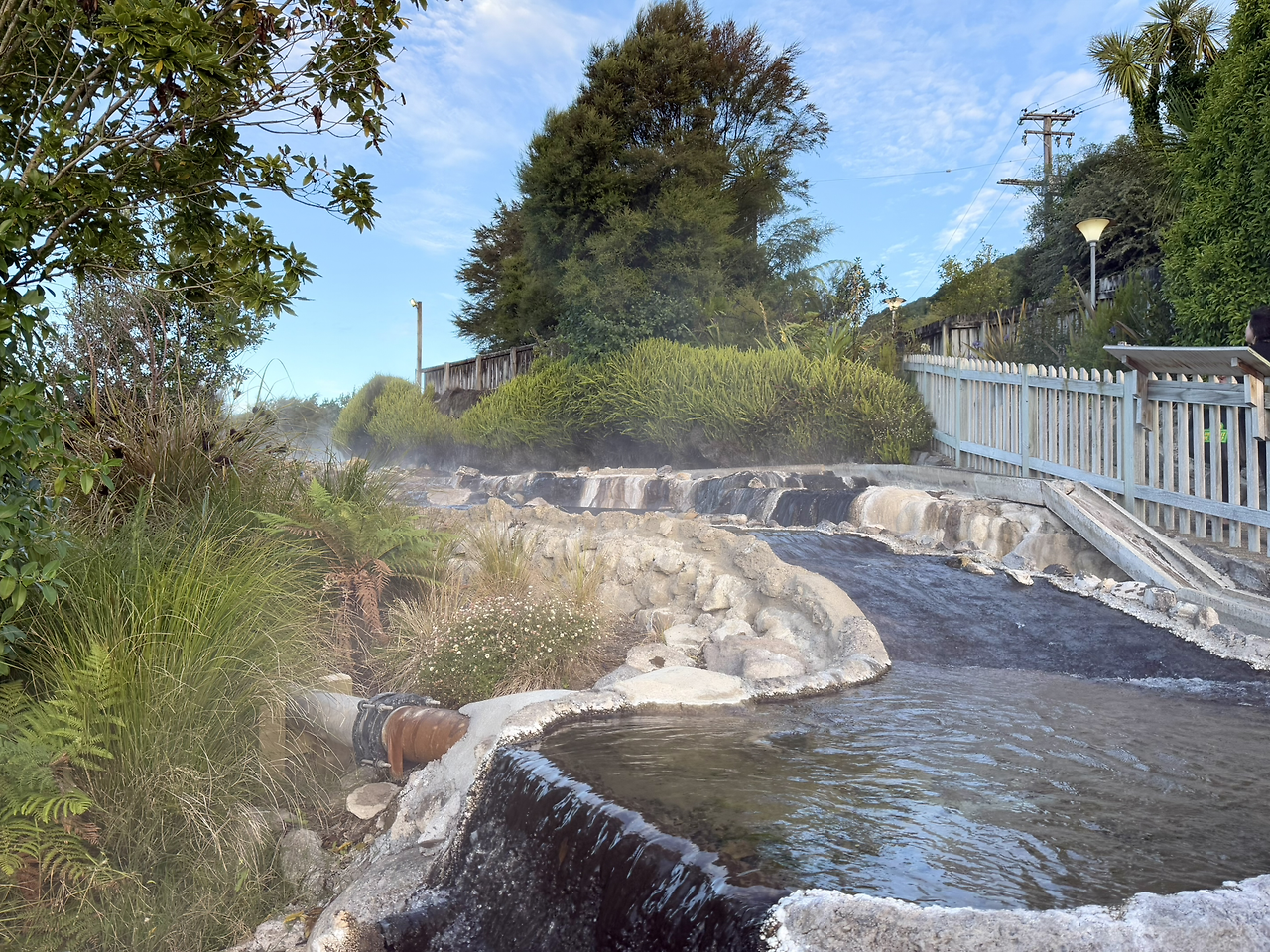 와이키테 온천(Waikite Valley Hot Pools)은 수영장처럼 보이기도 한다. 수온에 따라 여러 탕이 있다. 뜨끈한 온도를 찾아 여러 탕을 오가다가 마침내 나에게 딱 맞는 탕을 찾았다. 오늘의 피로가 다 날아가는 기분이었다.
