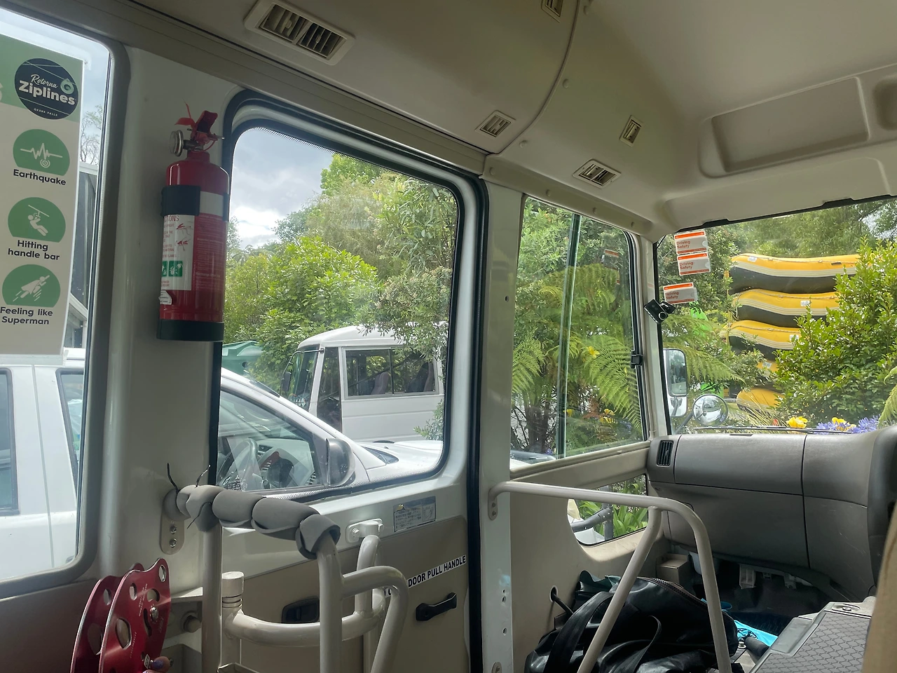 로토루아 집라인(Rotorua Ziplines) 업체에 도착하여 하네스와 헬멧을 착용하고, 집라인 출발 장소로 이동하는 차에 탔다. 집라인은 이미 한 번 경험해 본 아는 맛이었고 여기에 뉴질랜드는 대자연이다 보니 높이가 훨씬 더 높고 무서울까 봐 두려움이 앞섰다. 나 왜 한다고 했을까. 차 안에서 무섭다고 끙끙 댔던 거 같다. 다행히 차에서 내려 숲 속을 걷자 조금씩 마음에 안정이 생겼다.